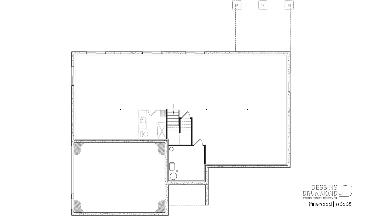 Le secteur des chambres est prévu dans la partie arrière gauche de la maison (ou droite si jamais vous décidez de commander le plan en format inversé). La chambre des maîtres possède une grande garde-robe walk-in, ainsi qu’une salle de bain privée, avec bain et douche séparée. Non loin de la chambre des maîtres se retrouve la salle de lavage assez grande pour y aménager des armoires et un pratique évier. Les 2 chambres secondaires prévues à ce secteur ont chacune une garde-robe walk-in et se partagent une salle de douche. Le sous-sol est non fini, à aménager selon vos besoins actuels ou futurs en chambres additionnelles et/ou salle familiale ou autre. De plus plusieurs options de sous-sol sont disponibles pour la plupart de nos plans : dalle de béton, vide sanitaire, rez-de-jardin, etc. Simplement nous contacter pour faire modifier ce plan ou obtenir un type de fondation différent.