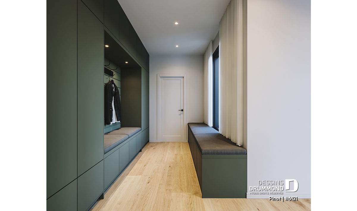 Vestiaire avec accès de l'entrée avant principale ainsi que du garage.