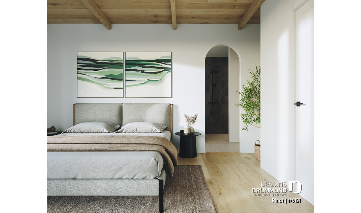 La suite des maîtres est un véritable refuge privé, avec salle de bain attenante et un walk-in pratique intégrant un coin laveuse-sécheuse superposées. Une salle d’eau supplémentaire, judicieusement placée en retrait des aires communes, ajoute encore plus de confort.