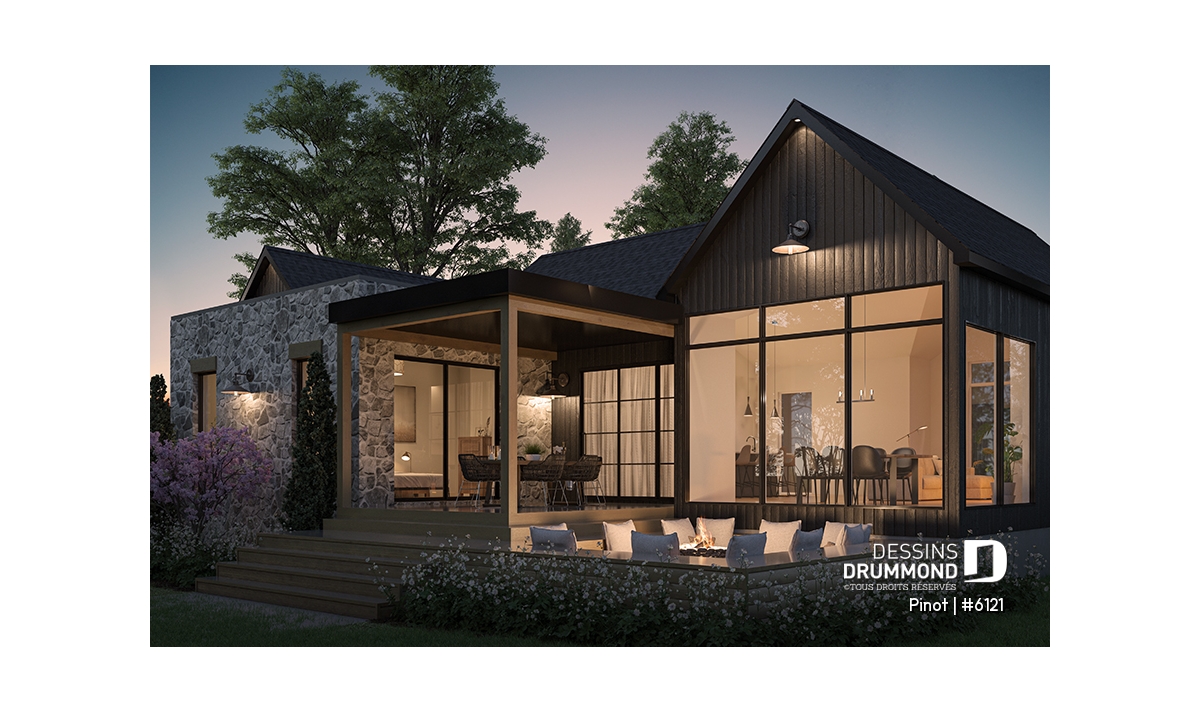 À l’extérieur, une terrasse arrière couverte, accessible à la fois de la chambre principale et de la cuisine, invite à profiter de la belle saison, beau temps comme mauvais temps.