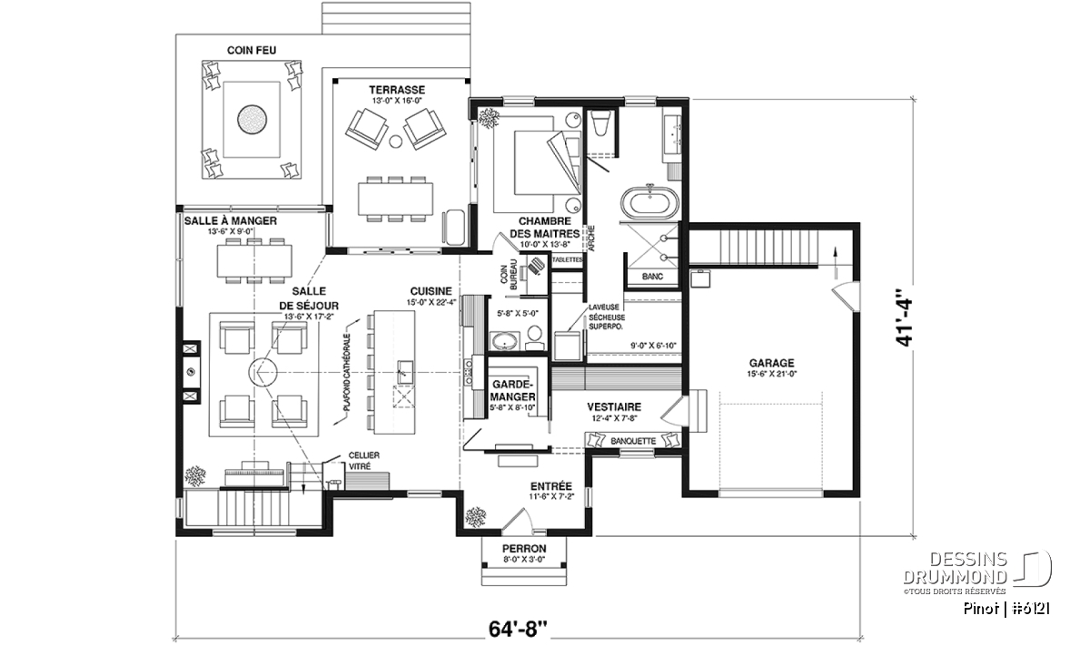 Vue paronamique, Vestiaire, Accès au sous-sol du garage, Aire ouverte, Chambres séparées, Garde-manger, Ilôt, Foyer, Plafond cathédrale, Suite des maîtres au rdc, Terrasse abritée, Banquette, Salle de lavage au rez-de-chaussée, Cellier, Plafond à plus de 8', Coin bureau, Tablettes, Bain et douche séparés, Arche