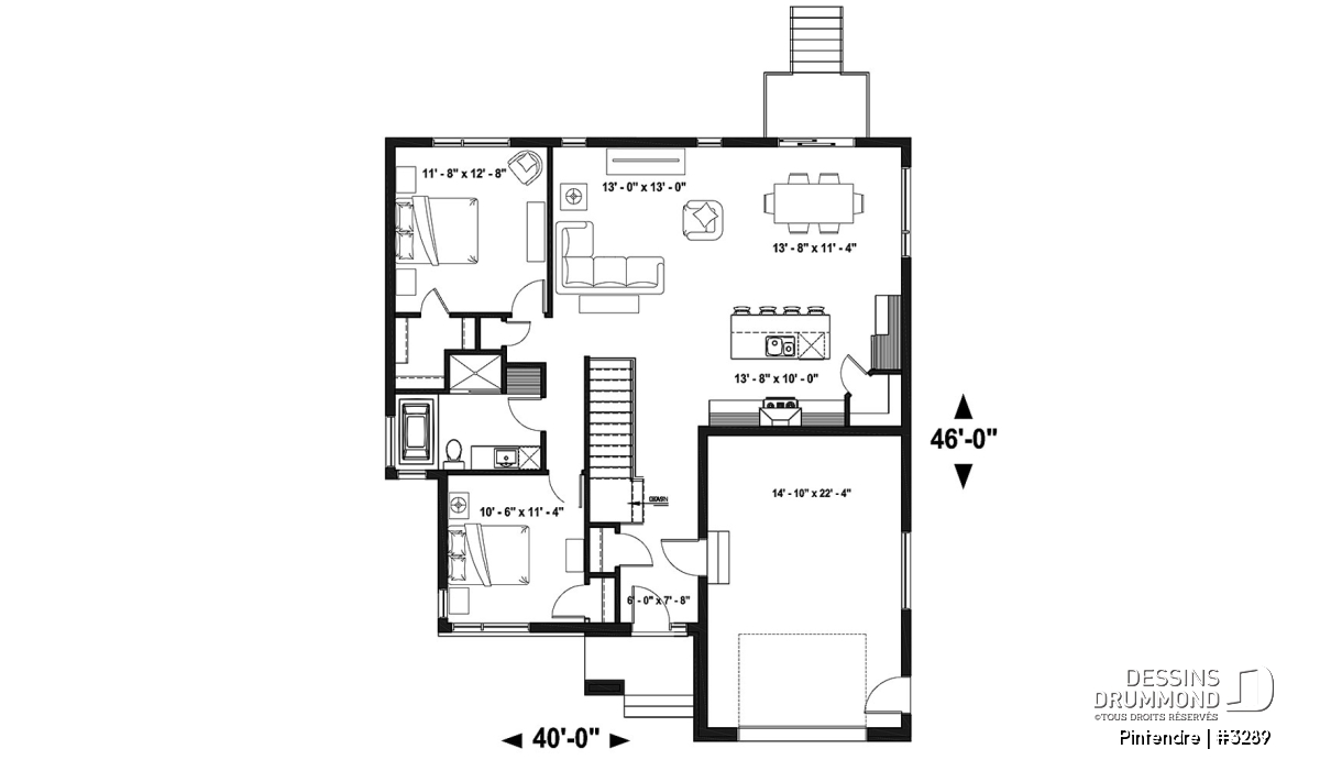 | Largeur | 40'0" | Profondeur | 46'0" |