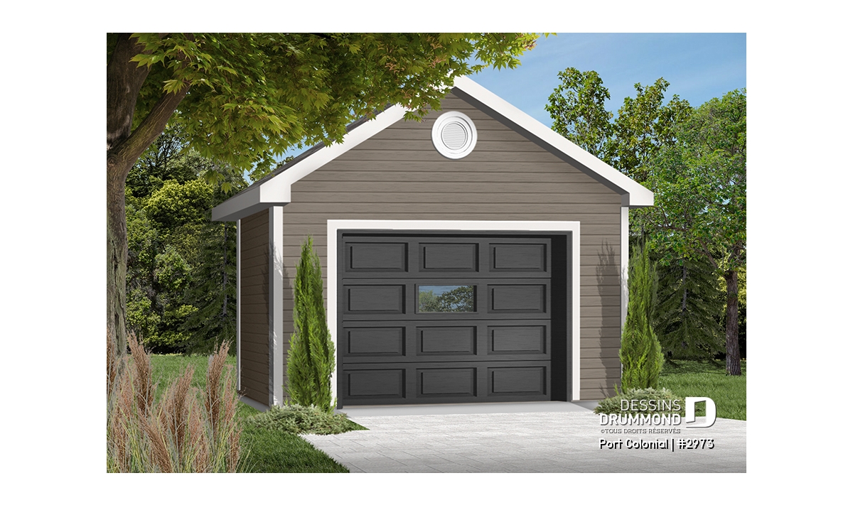Plan de garage simple détaché de style Américain, pouvant s'harmoniser avec plusieurs styles de maison
