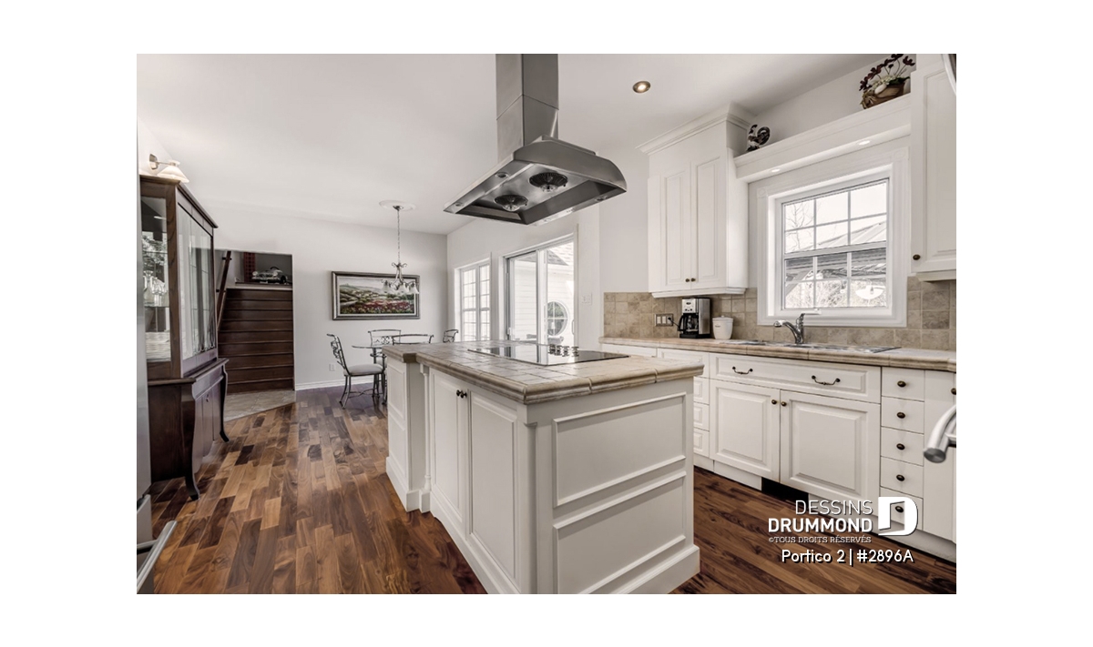 Élaboré dans une pensée américaine, ce cottage se distingue à l’extérieur par sa galerie avant épousant à merveille une tourelle de coin liant ainsi le garage à la maison et à l’intérieur, par deux accès à des étages bien différents.