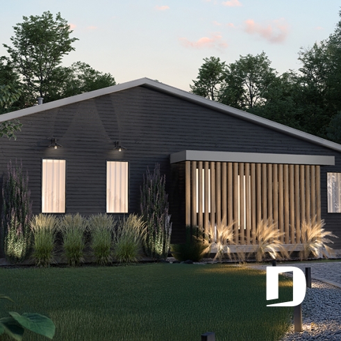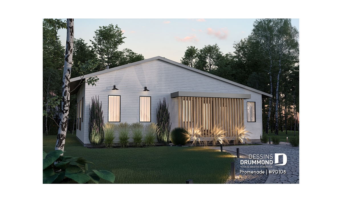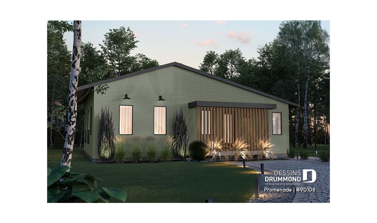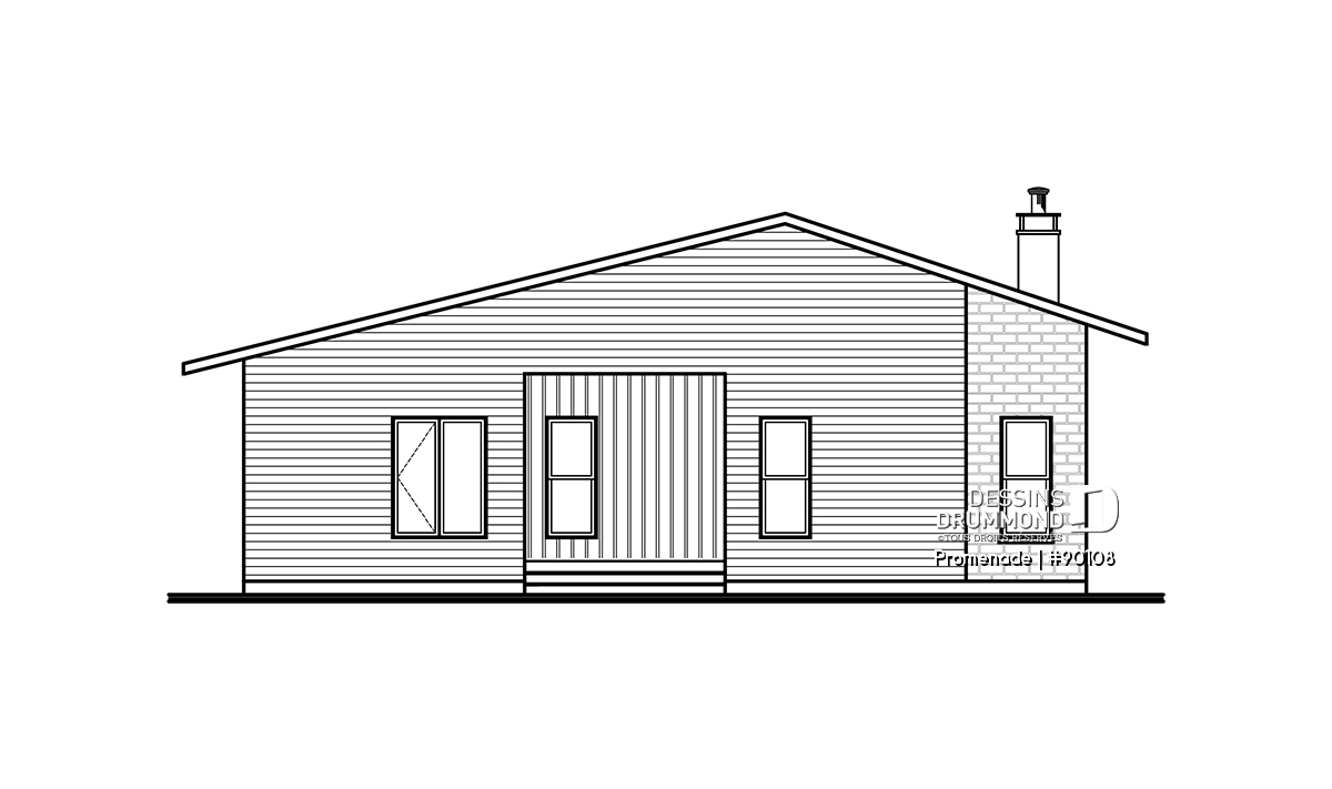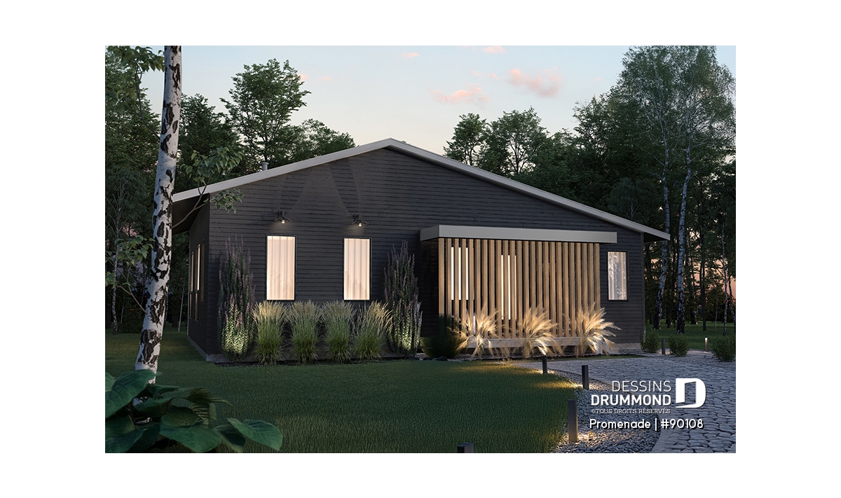 Le plan de maison PROMENADE (#90108) a été conçu pour un terrain dont la façade se trouve à l’EST. Le concept de cette maison est de toujours avoir un lien avec la nature. Peu importe la direction que vous emprunterez, vous serez toujours face à une fenêtre.
