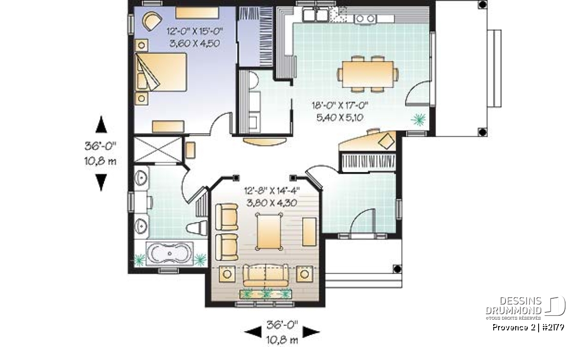 | Largeur | 36'0" | Profondeur | 36'0" |