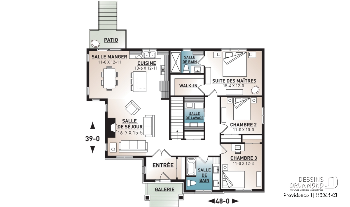 Version avec garage de ce modèle est disponible, voir le plan # 3284-CIG1