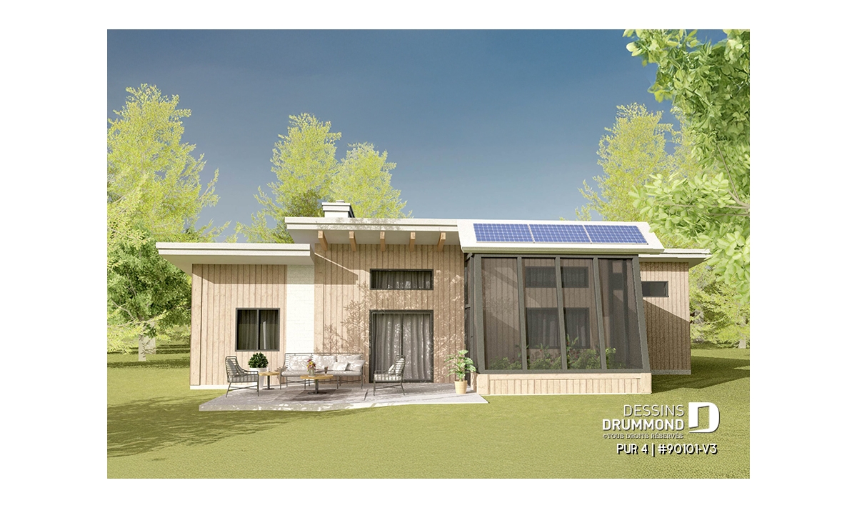 Créée pour une orientation au nord, la mini maison Pur 4 (#90101-V3) a tout pour satisfaire tes besoins minimalistes! La base de cette maison correspond à la mini maison Pur 3 (#90101-V2) qui contient une cuisine et salle à manger, un salon, 3 chambres, une salle de bain, une pièce mécanique et même une serre. Cette maison chaleureuse correspond à un petit budget tout en comprenant tous les éléments essentiels d’une maison.