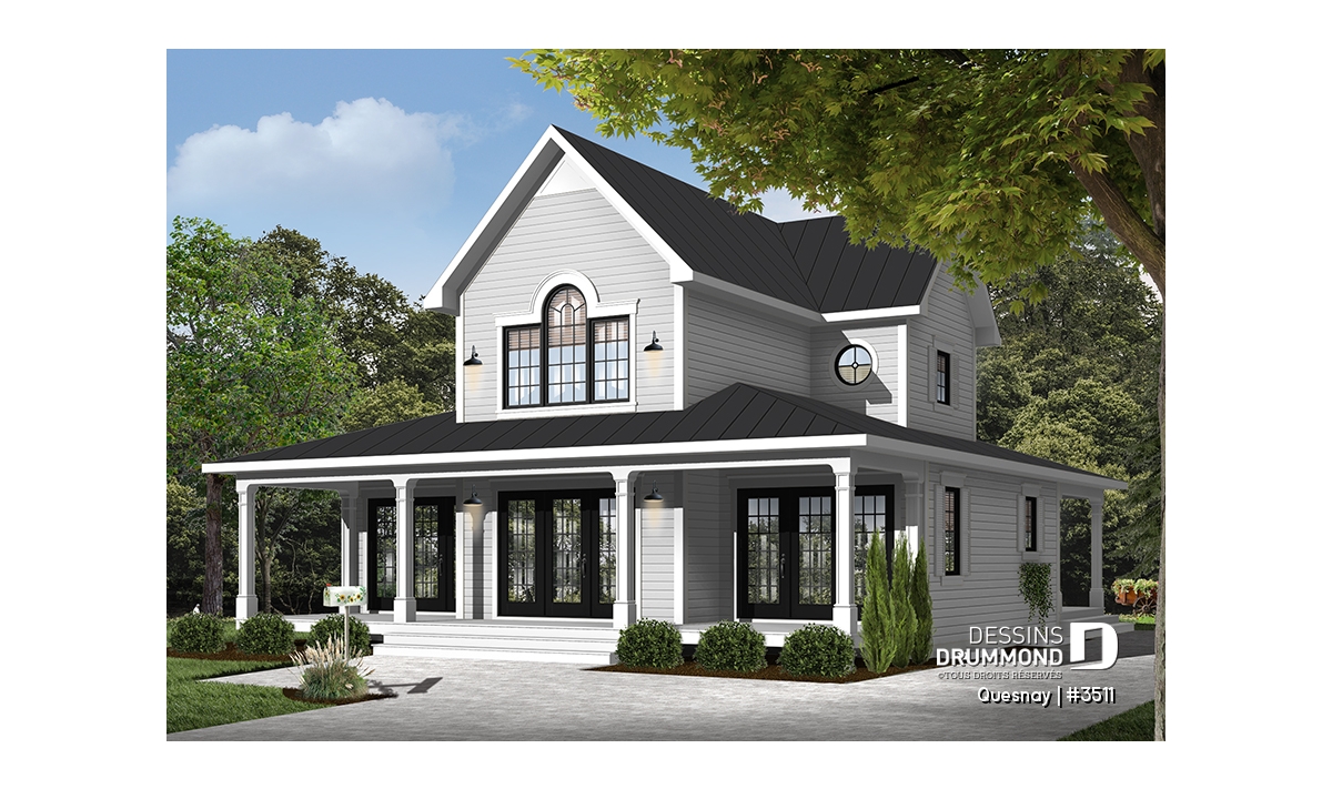 Grande galerie avant couverte et autre galerie couverte à l'arrière.