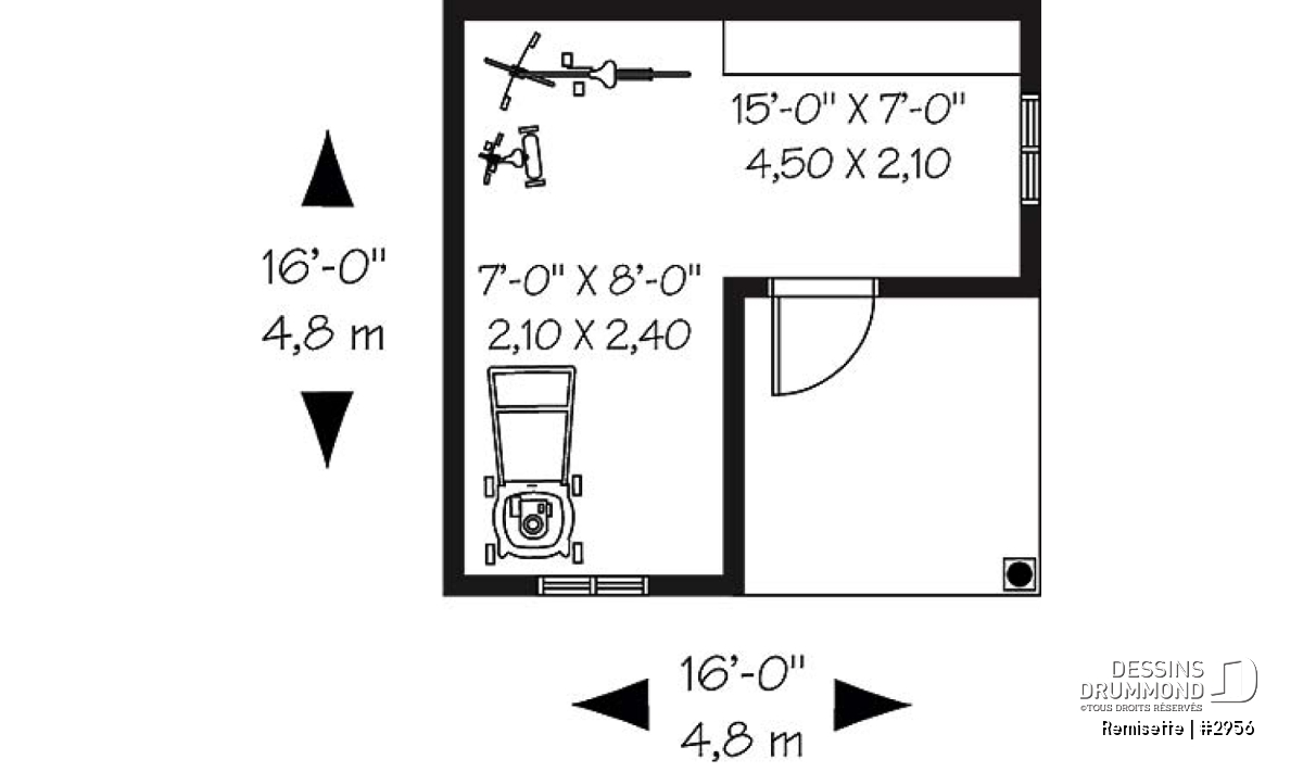 Plan de remise 16pi x 16pi pour rangement articles de sport et de jardinage