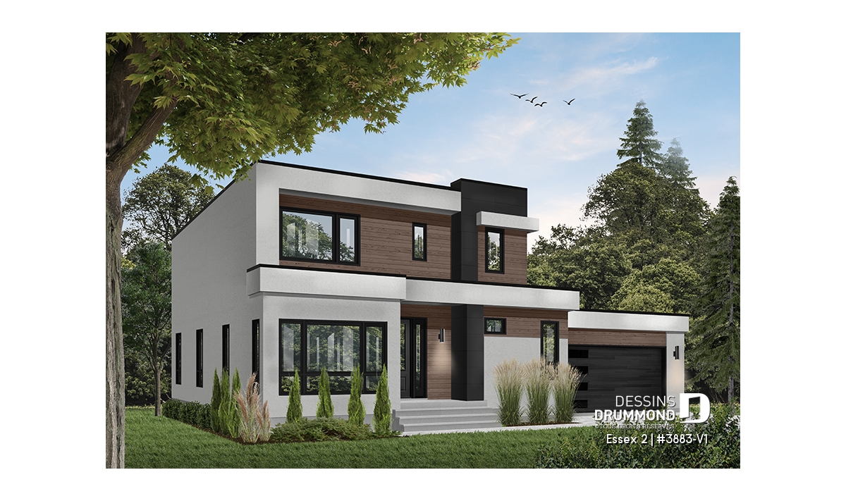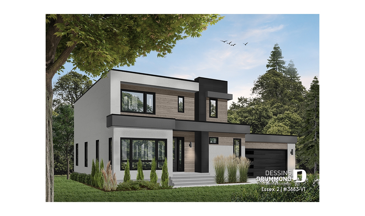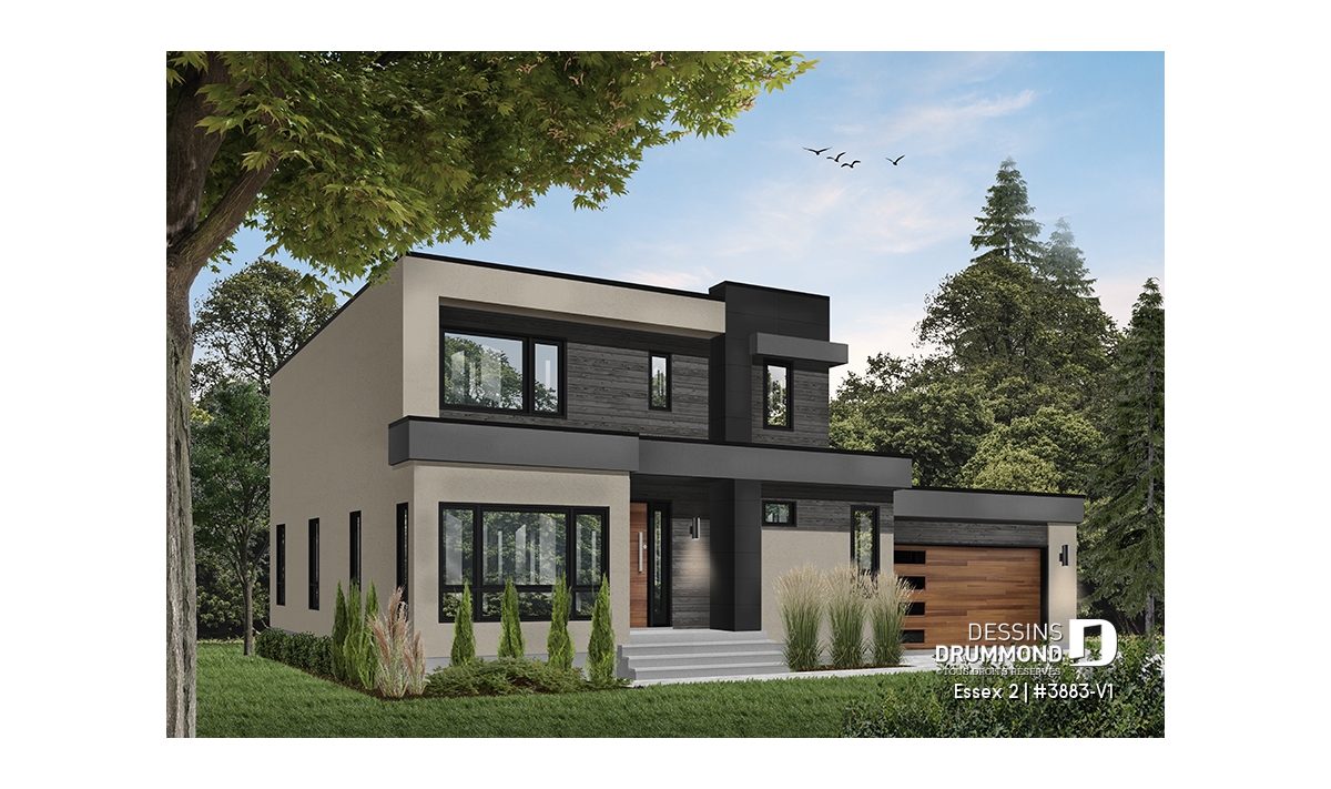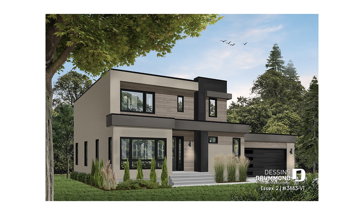 Modèle de maison de style cubique, avec garage double.