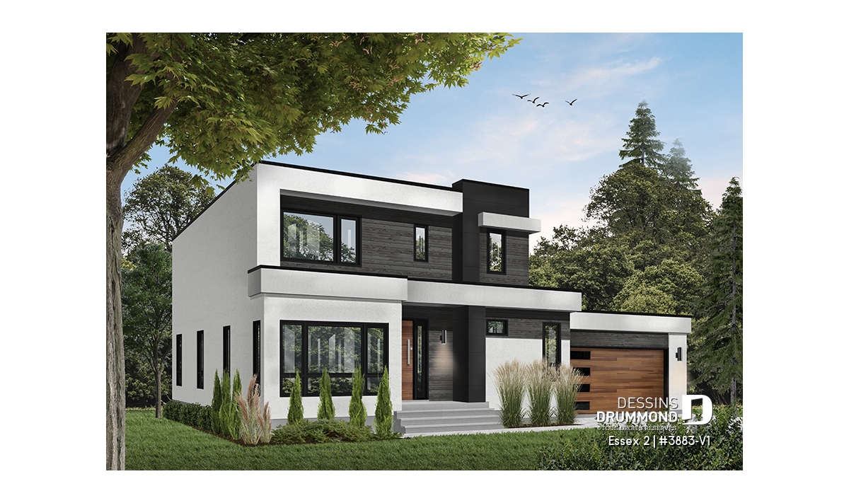Le look épuré de cet modèle de maison moderne plaira à notre clientèle avant-gardiste qui cherche à se distinguer en s’offrant une maison tendance aux commodités multiples. Offrant 3 à 4 chambres dont une suite chambre des maîtres à l’étage, ce plancher plaira aussi aux familles avec plusieurs enfants ainsi qu’aux familles recomposées.