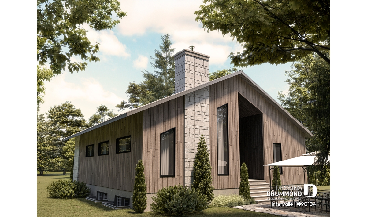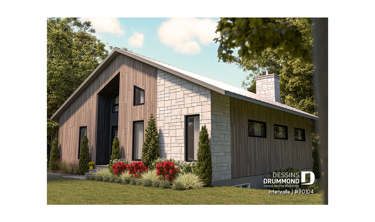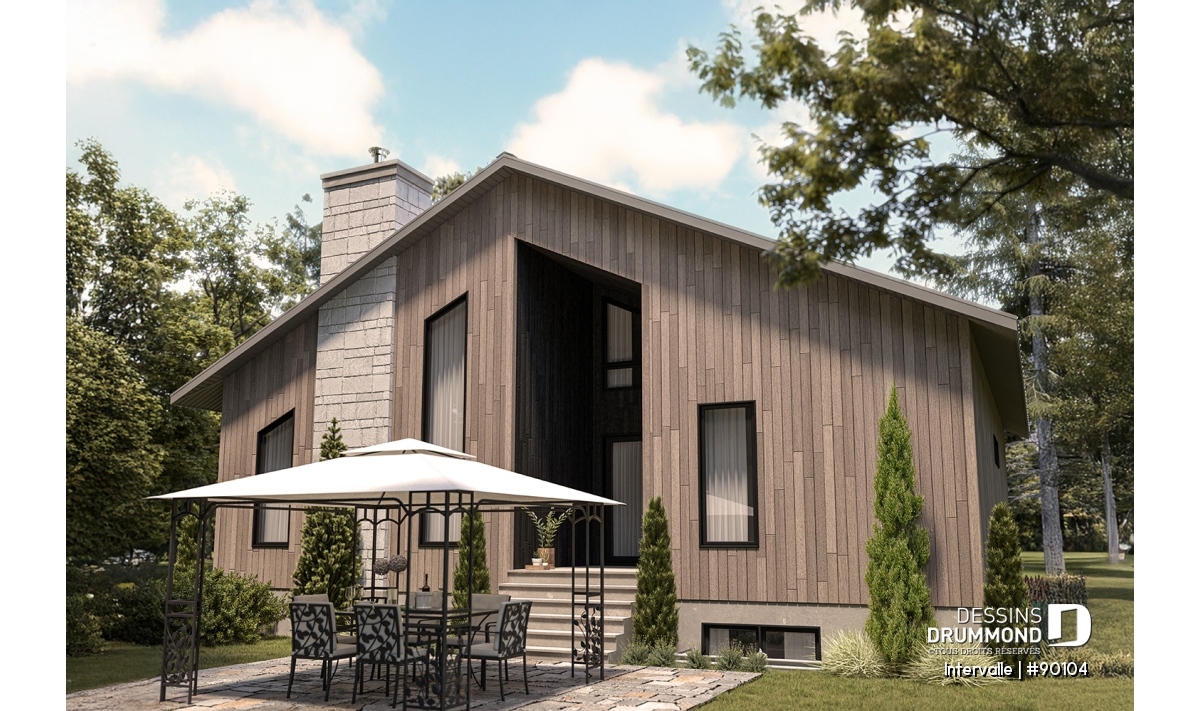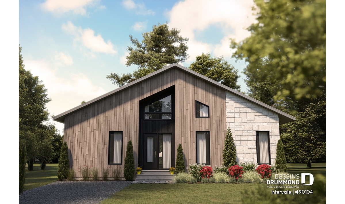 Le plan de maison éco-responsable INTERVALLE (#90102)) est parfait pour les terrains dont la façade se trouve à l’est. Ses grands espaces de vie surplombés d’une mezzanine permettront à tous les membres de la famille de profiter d’une ambiance chaleureuse sans se piler sur les pieds. Il y a même un petit boudoir intime sur la mezzanine. Vous imaginez vous y faire une séance de yoga par exemple?