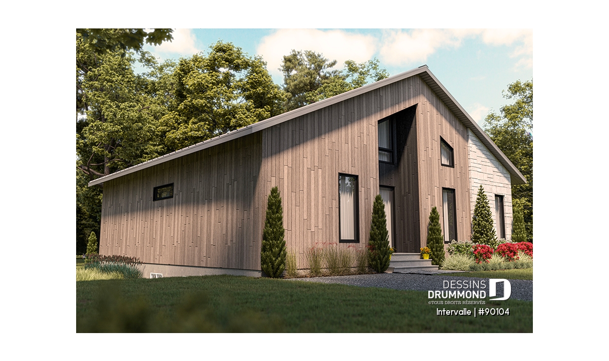 Une maison aux volumes modestes assurant une construction simplifiée, tout en favorisant la maximisation des espaces intérieurs, afin de réduire le nombre de pied carrés et le coût de construction.