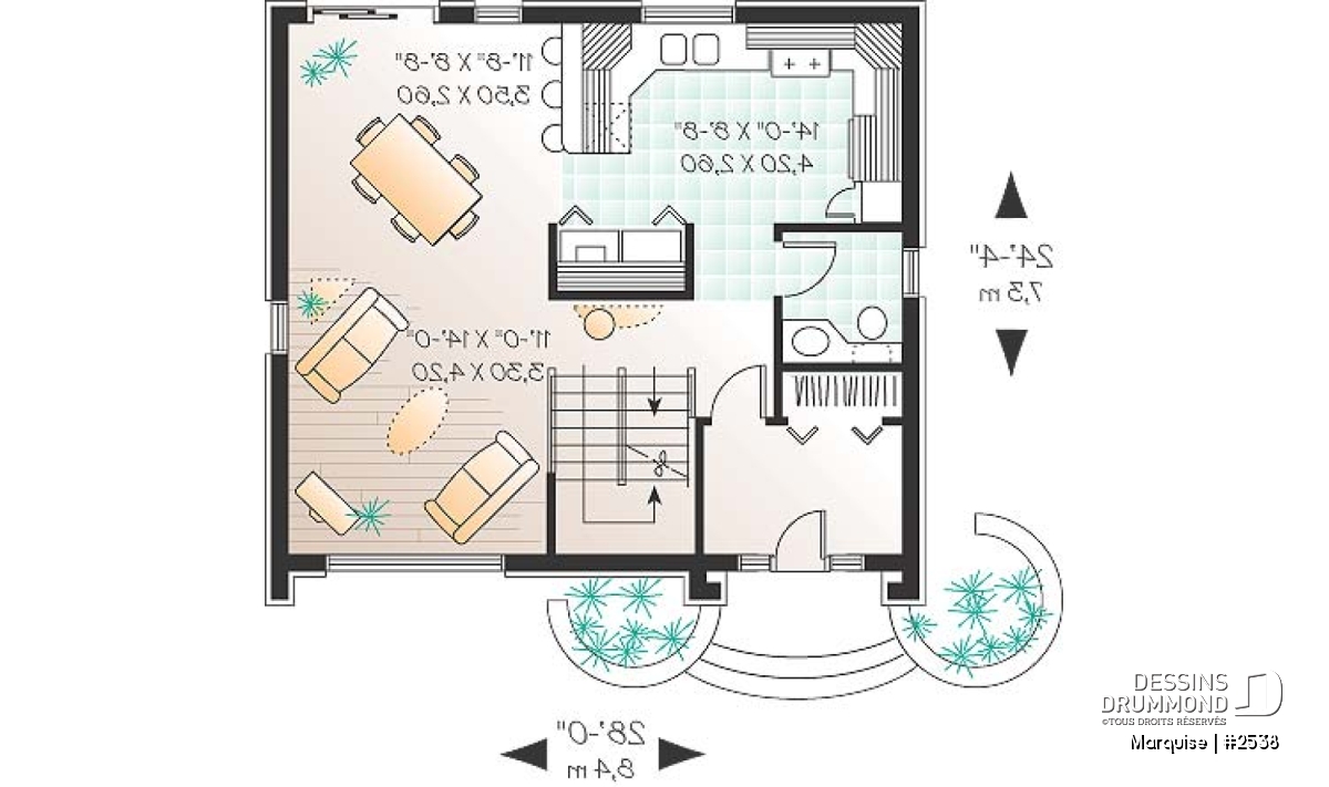 | Largeur | 28'0" | Profondeur | 24'4" |