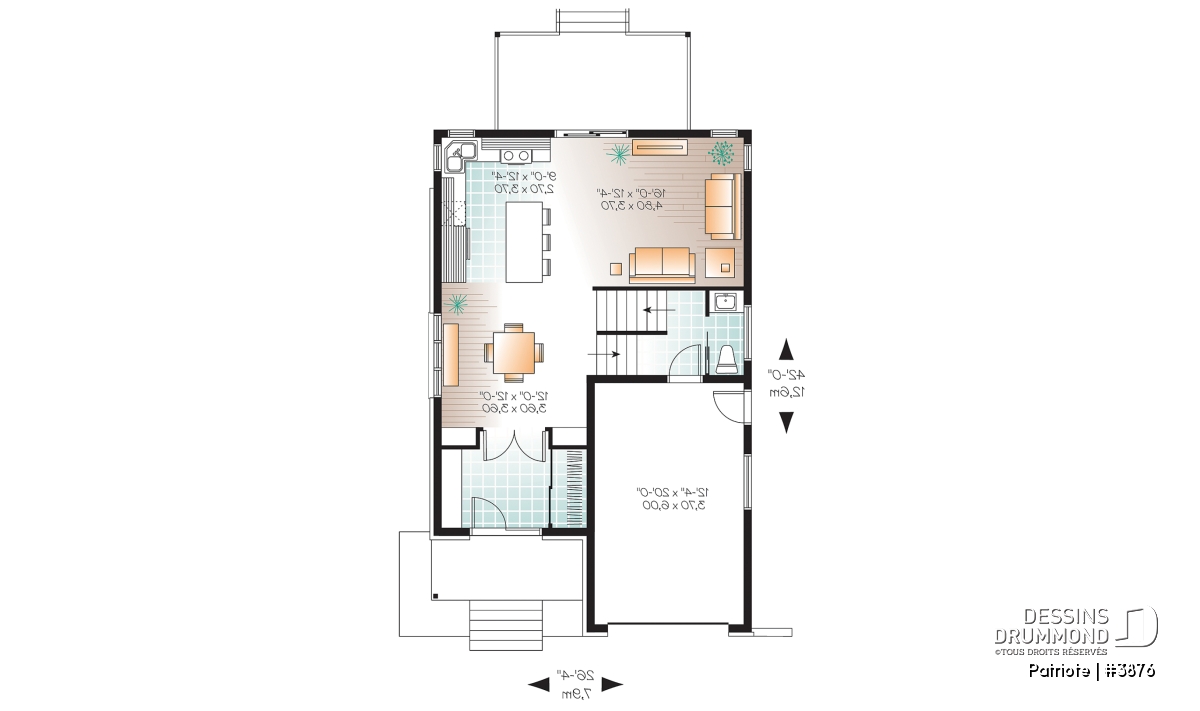 Rez-de-chaussée - Plan de maison contemporaine, garage, 3 chambres, grande cuisine, superbe chambre parents, terrasse abritée - Patriote