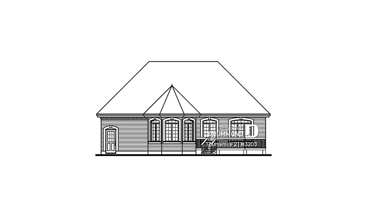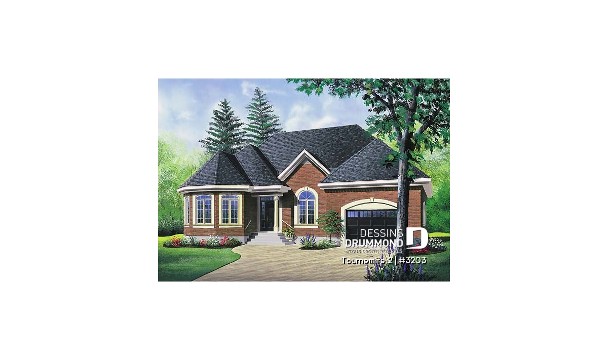Habillé de brique aux quatre façades, ce plain-pied se veut une valeur sûre. Un garage suffisamment confortable et deux aménagements intérieurs différents le démarquent de bien d’autres. Un perron avant accessible sur deux faces nous donne accès à l’entrée principale ouvrant dans les deux cas sur un vestibule. Des formes arrondies tant à l’avant qu’à l’arrière de la maison permettent à celle-ci d’offrir pour chacune des propositions un éclairage abondant aux chambres des maîtres, au coin dînette (3203) et à la salle de séjour (3202).