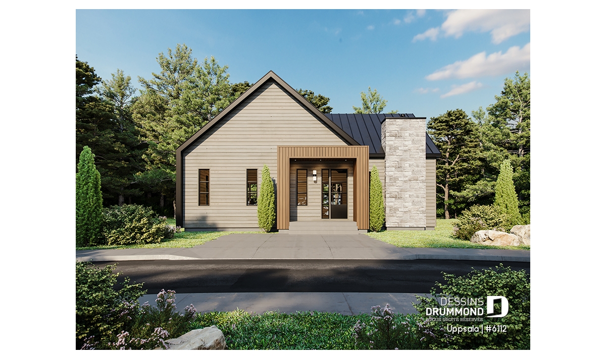 Plan de maison de style épuré Scandinave, avec sous-sol aménagé (optionnel $).