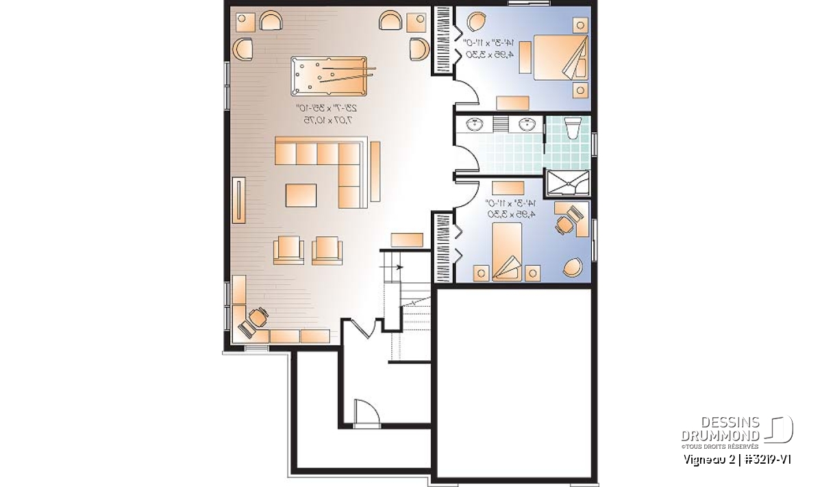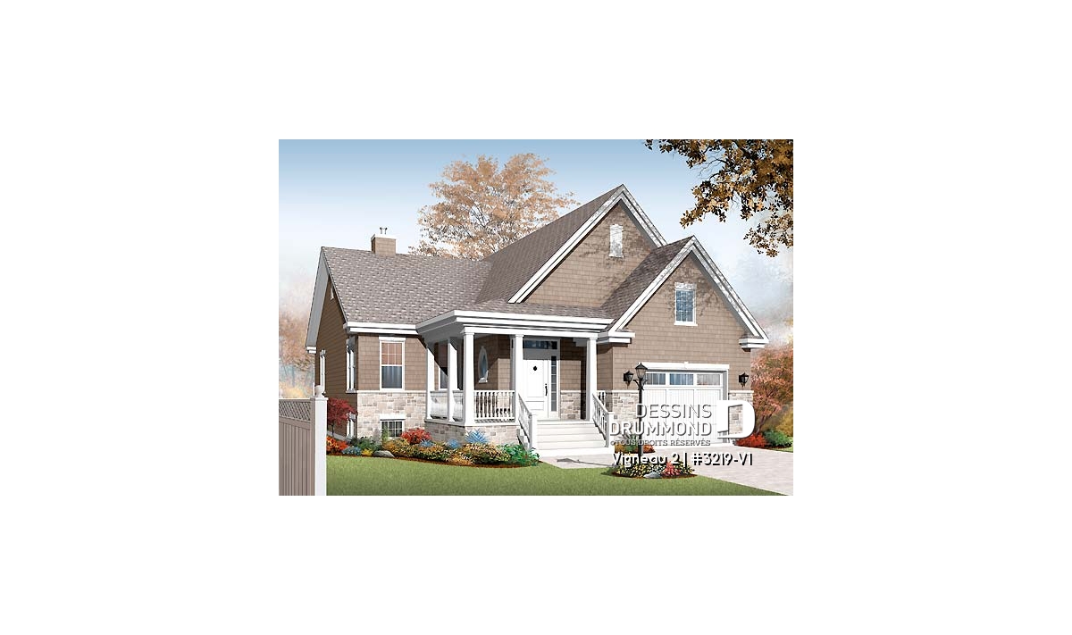 Comment convertir un plain-pied de deux chambres en un plain-pied de 4 chambres ? Et pourquoi pas en aménageant le sous-sol ! Voilà donc le sort qu’on a réservé au plan d’origine 3219 qui, passablement sorti du sol, se prêtait fort bien à un aménagement du sous-sol proposant des fenêtres de bon format.