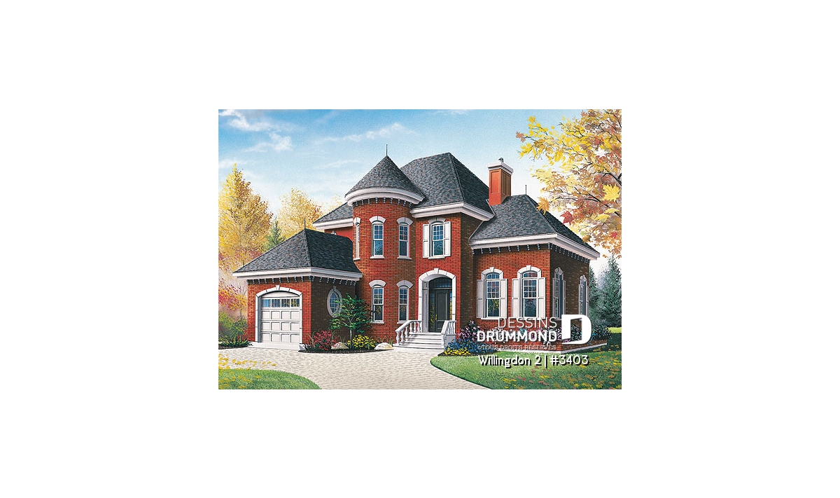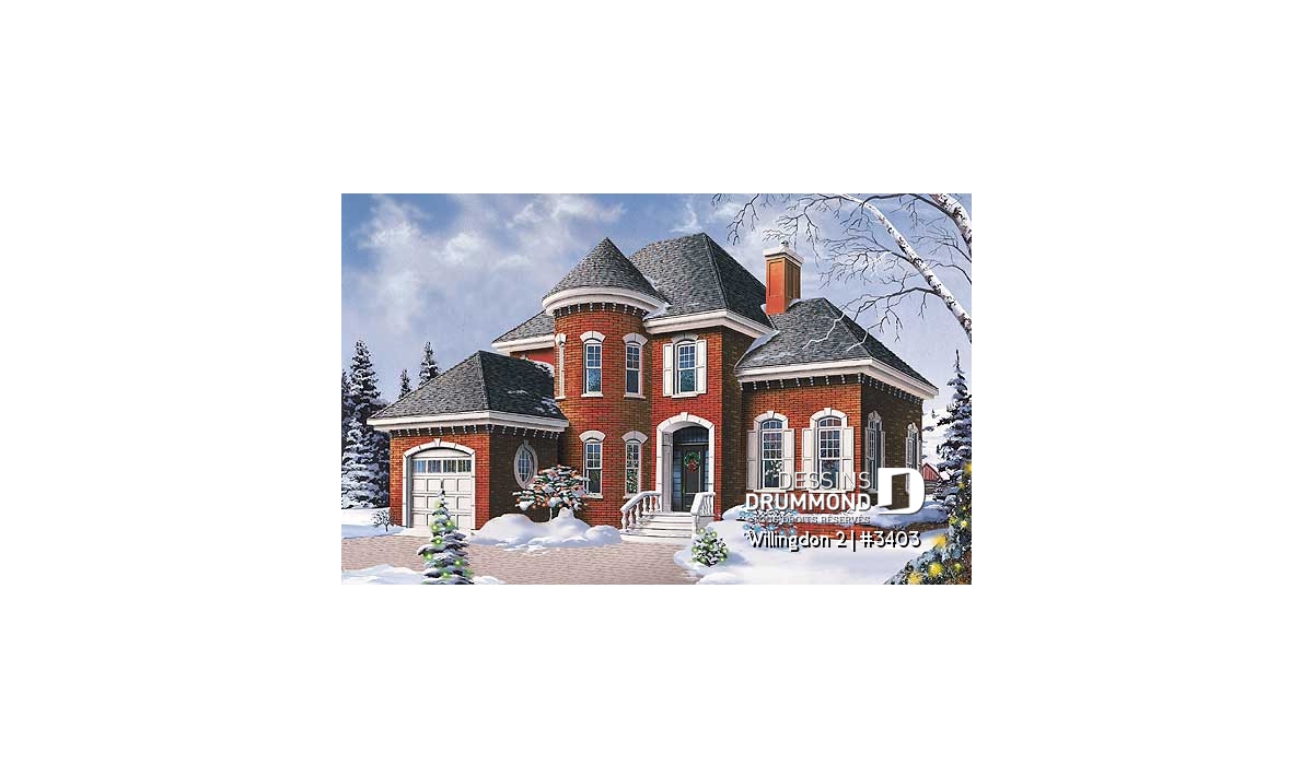 Empruntant aux manoirs de beaux éléments d’architecture tels les jeux de briques aux corniches, la tourelle en façade, la porte principale en retrait avec panneaux latéraux et les balustres au perron avant, ce modèle a suscité de l’intérêt dès son édition sur nos différents médias.