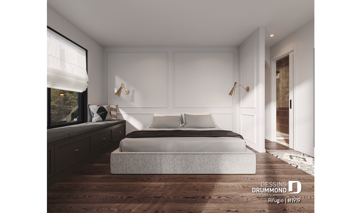 Chambre principale à l'étage propose une grande banquette de lecture et l'accès à la grande terrasse de19'4'' x 10'.