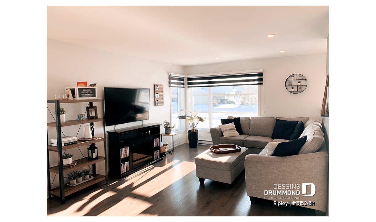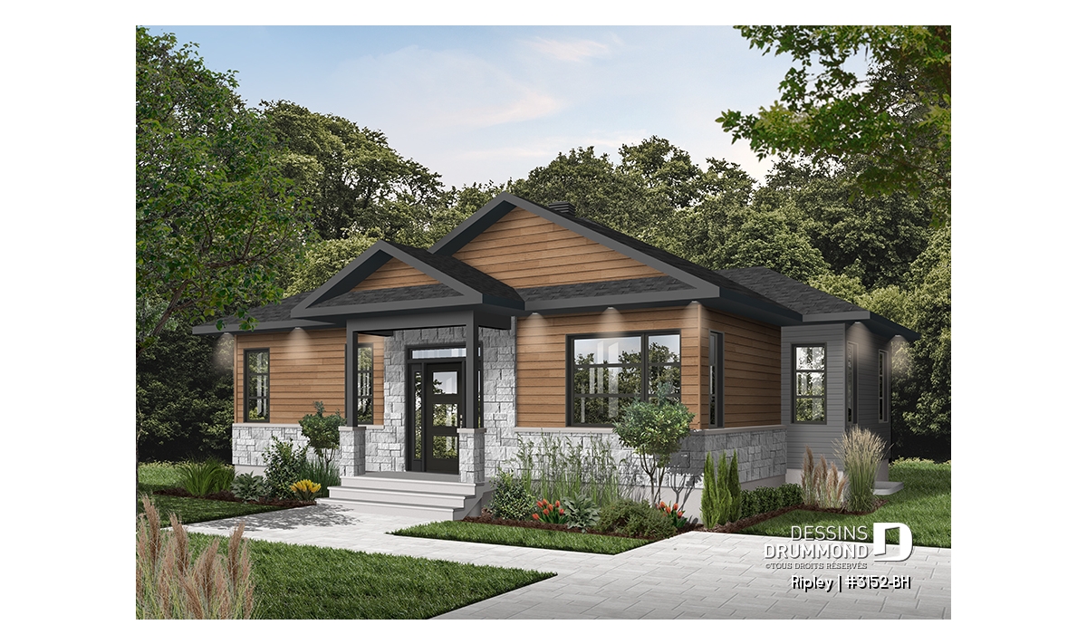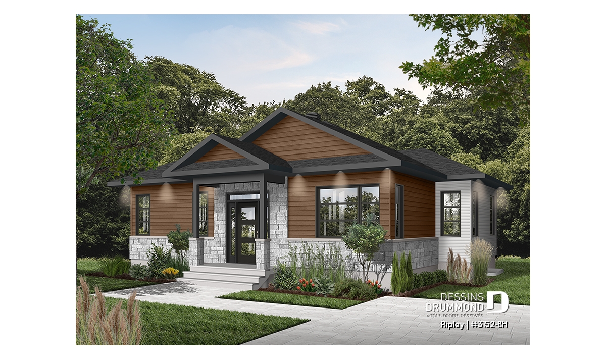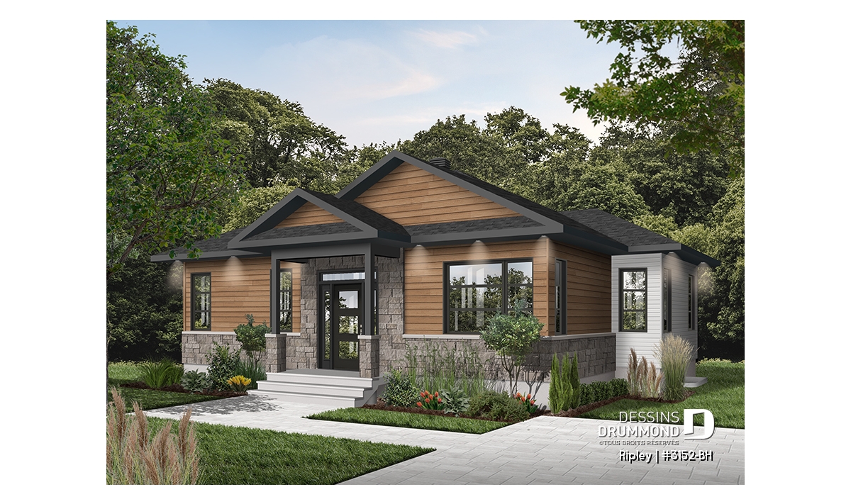 Modèle Américain offrant 2 chambres à coucher et une salle de bain, qui a toutes les caractéristiques requises pour une jeune famille. Elle peut même devenir un endroit parfait pour les baby boomers en y ajoutant un garage, par exemple.