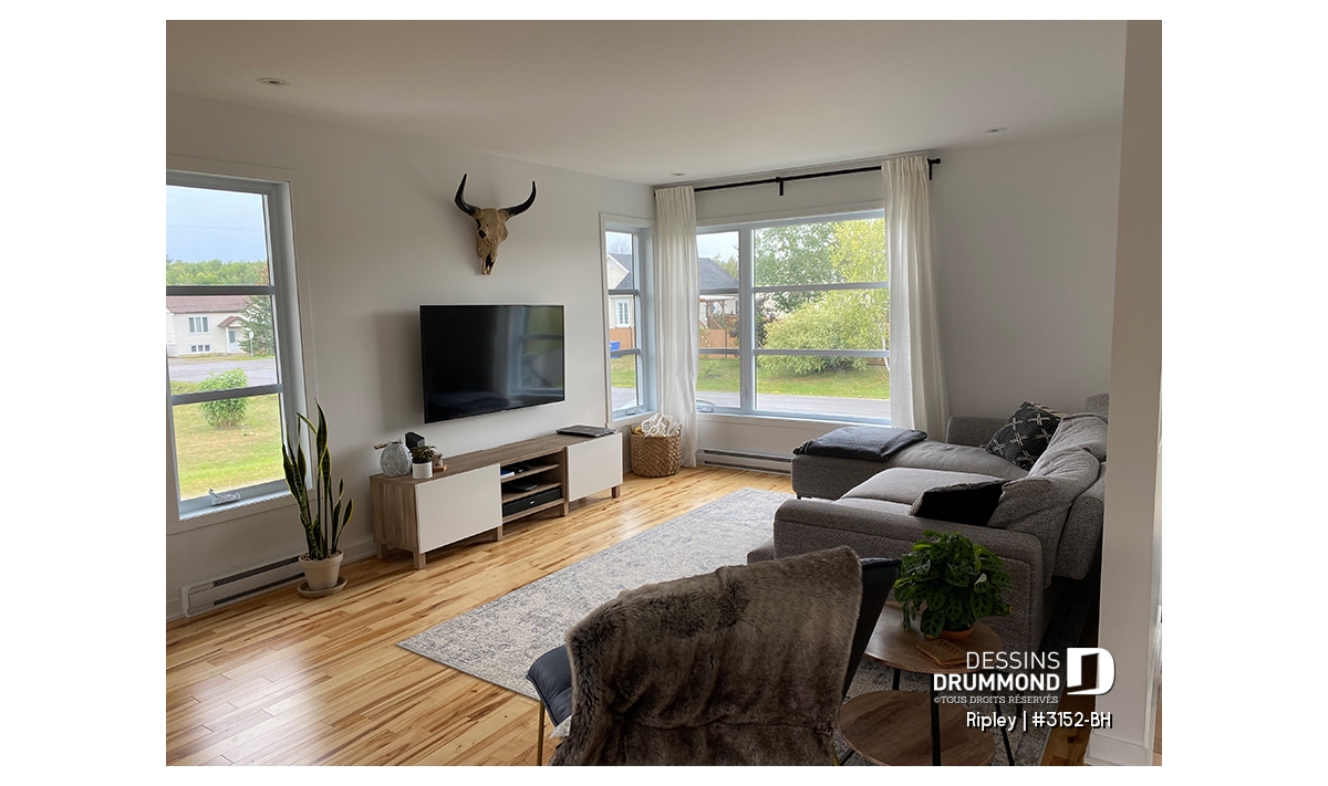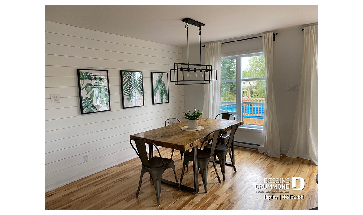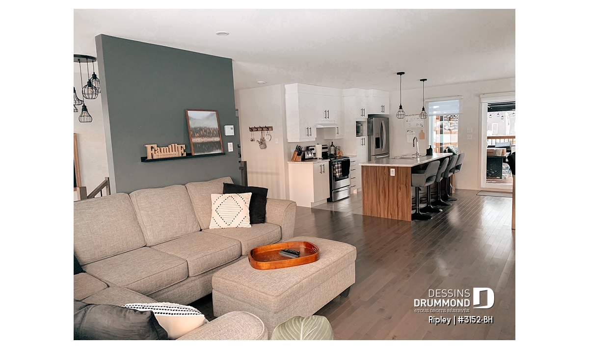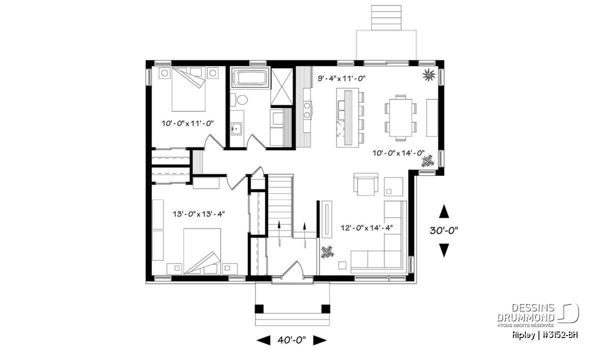 Modèle Américain offrant 2 chambres à coucher et une salle de bain, qui a toutes les caractéristiques requises pour une jeune famille. Elle peut même devenir un endroit parfait pour les baby boomers en y ajoutant un garage, par exemple.