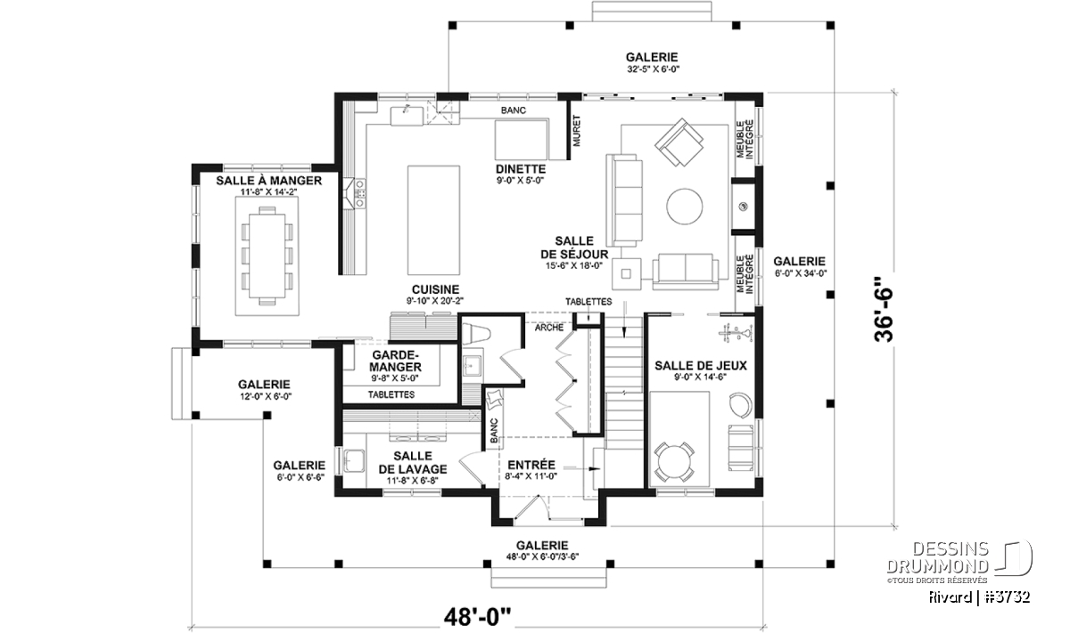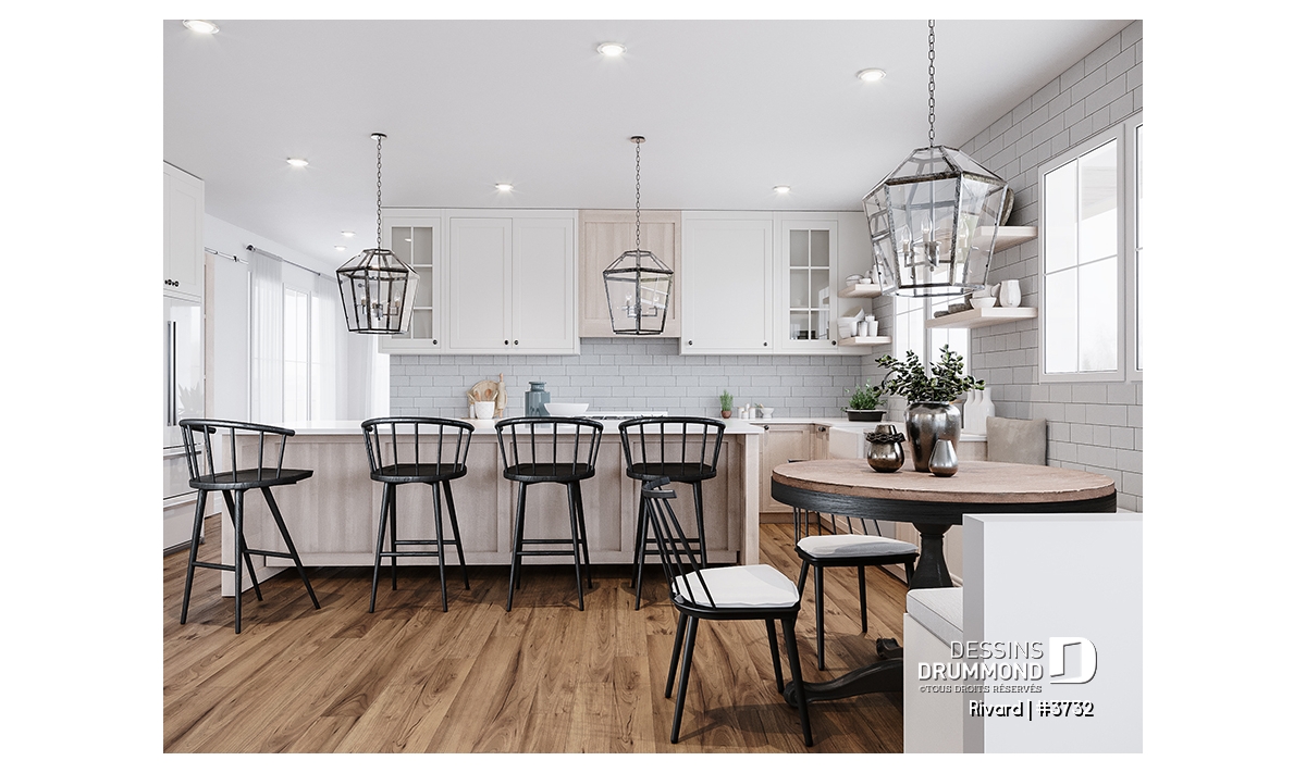 Aire ouverte, Chute à linge, Entrée ouverte sur 2 étages, Galerie 2-3 côtés, Foyer, Plafond à plus de 8', Salle à manger formel, Salle de jeux, Salle de lavage au rez-de-chaussée, Suite des maîtres à l'étage, Lavabo double, Meuble(s) encastré(s), Banquette, Dinette / Coin déjeuner, Tablettes, Bureau / Salle étude, Arche, Bain dans la douche, Cellier