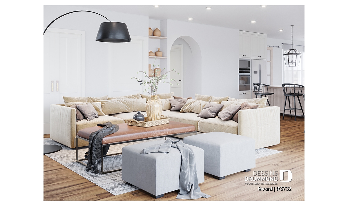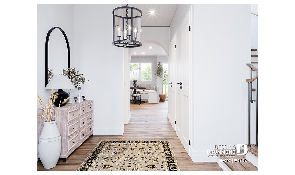 Une arche sépare le secteur hall d'entrée et les aires communes à l'arrière de la maison.