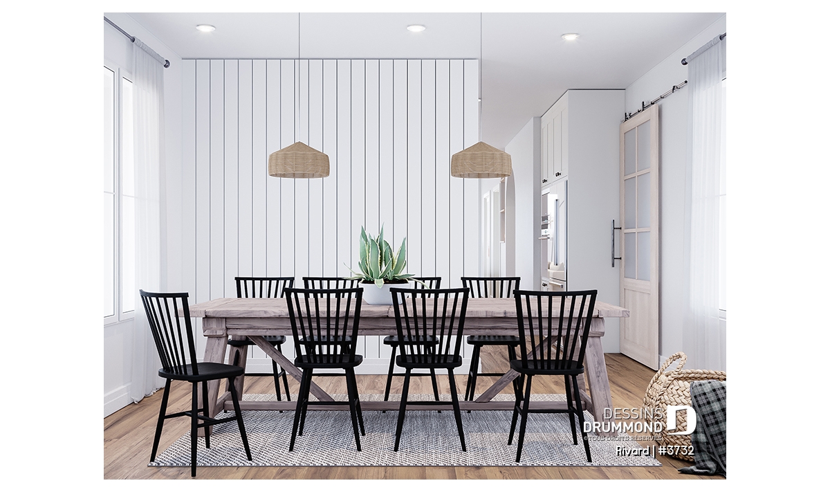 Salle à manger très lumineuse.
