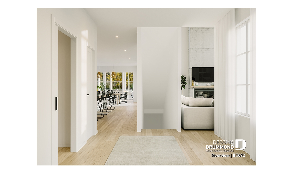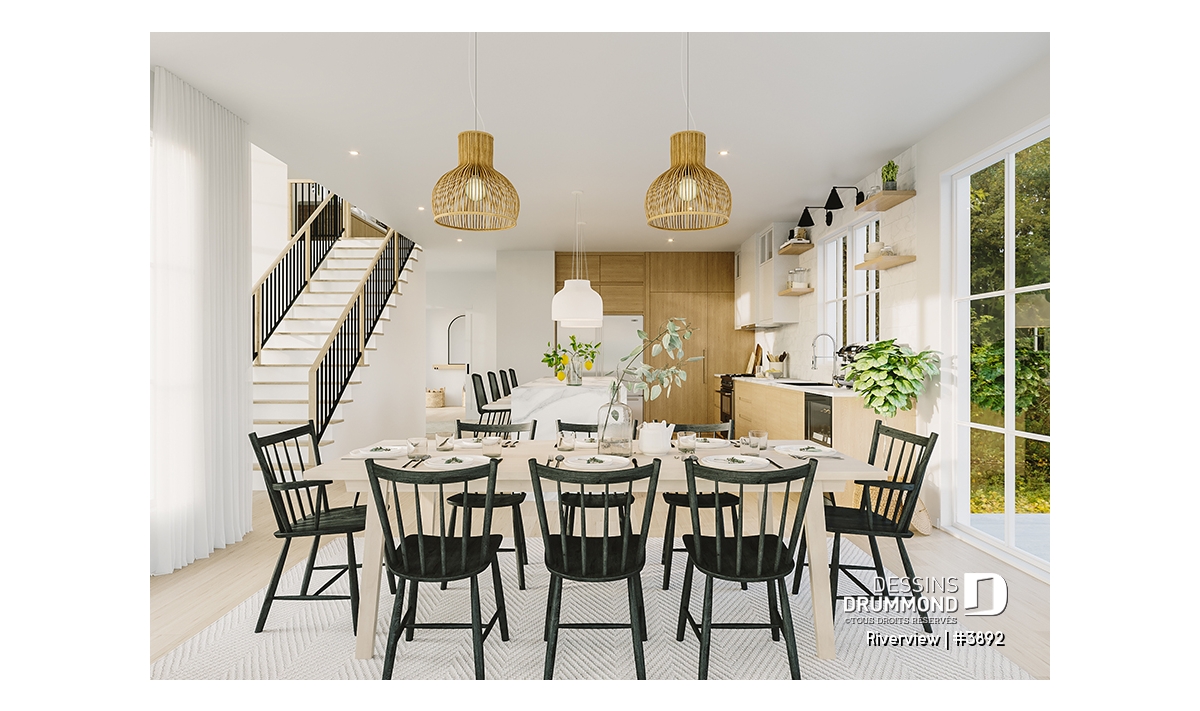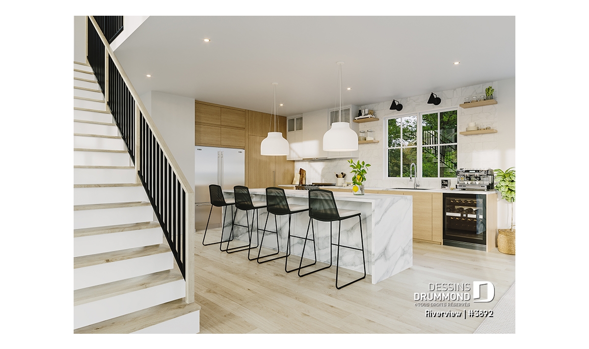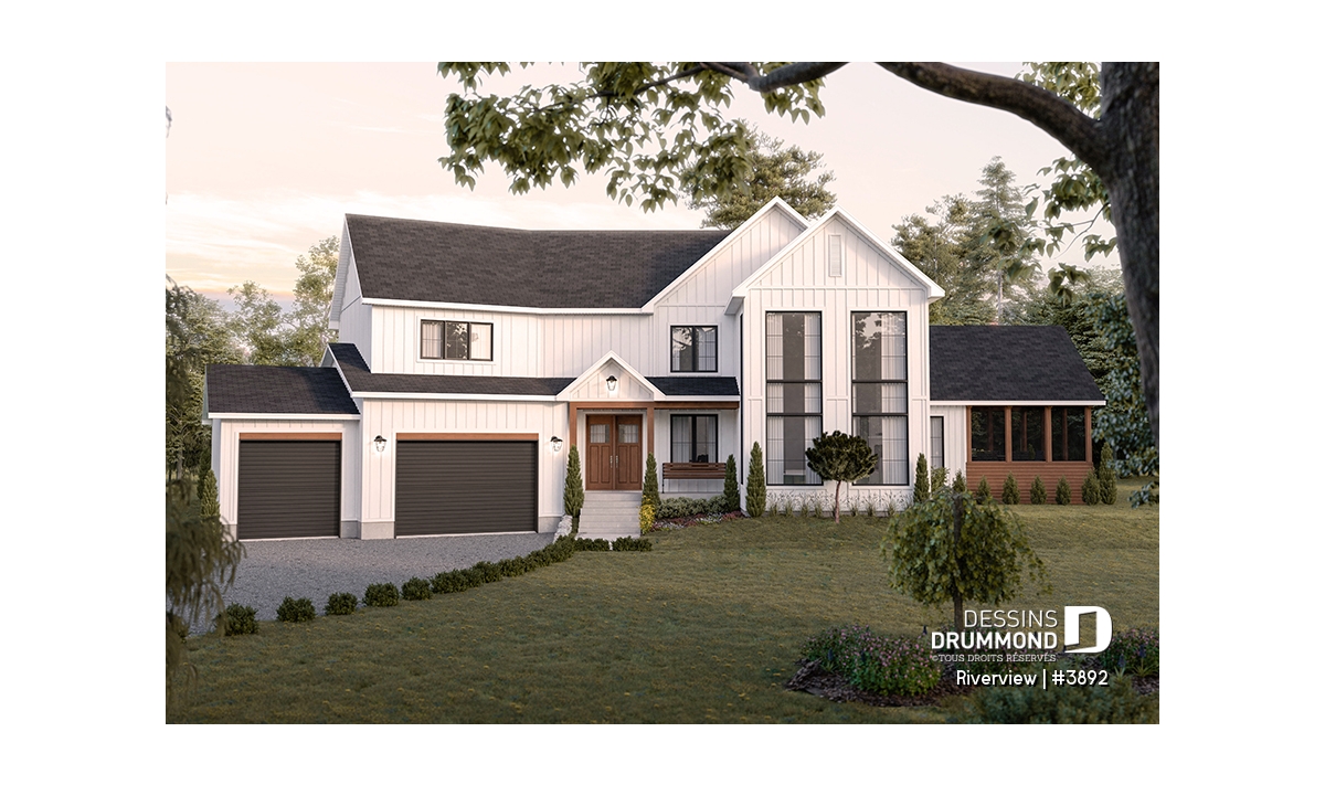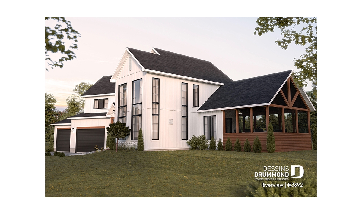 Plafond à plus de 8', Vestiaire, Garde-manger, Suite des maîtres à l'étage, Walk-in ch. maîtres, Lavabo double, Bain et douche séparés, Banquette, Foyer, Terrasse abritée, Chute à linge, Porte(s) de grange, Tablettes, Ilôt, Meuble(s) encastré(s), Garage spacieux, Abri moustiquaire