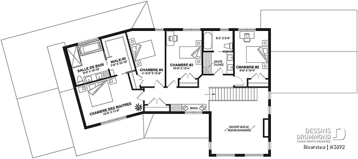 La suite des parents proposent un grand walk-in de 7' x 10'10'' ainsi qu'une salle de bain privée.