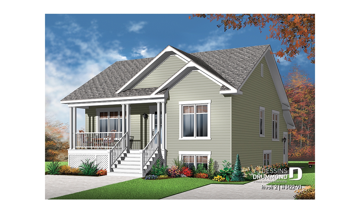 Version couleur no. 4 - Vue avant - Plan de DUPLEX de style champêtre avec galerie abritée au premier, 2 chambres / unité, buanderie, bon prix - Rivoli 2
