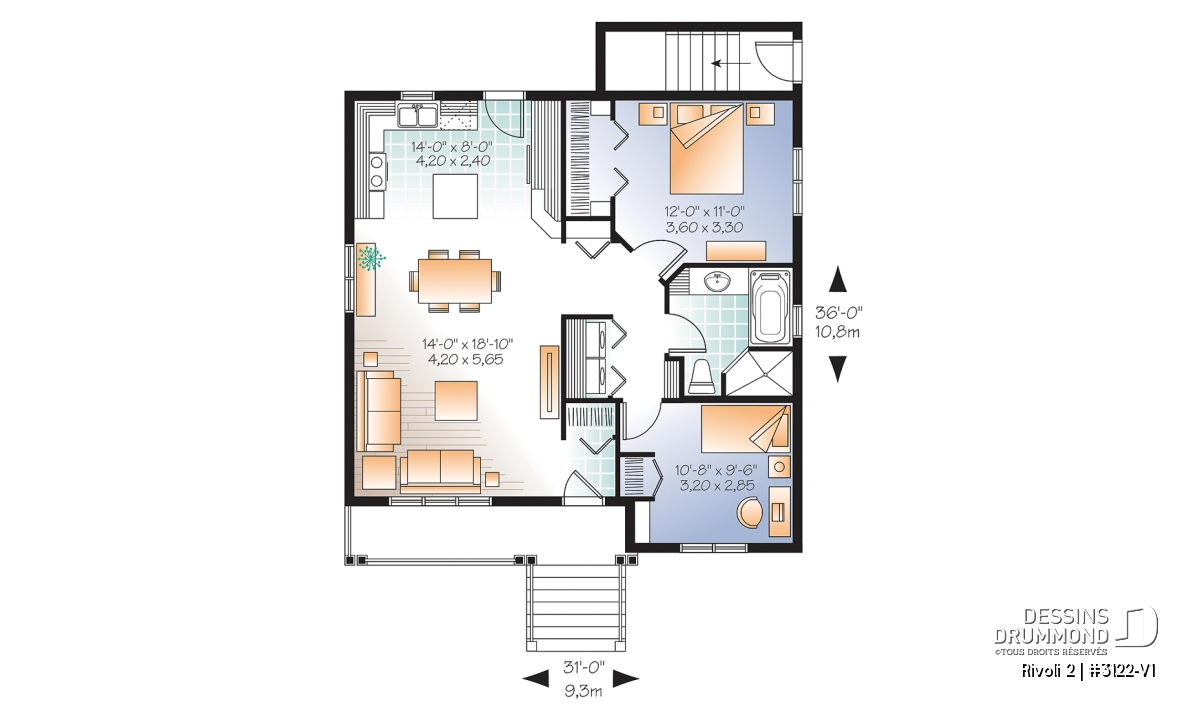 Largeur 31'0" Profondeur 36'0"