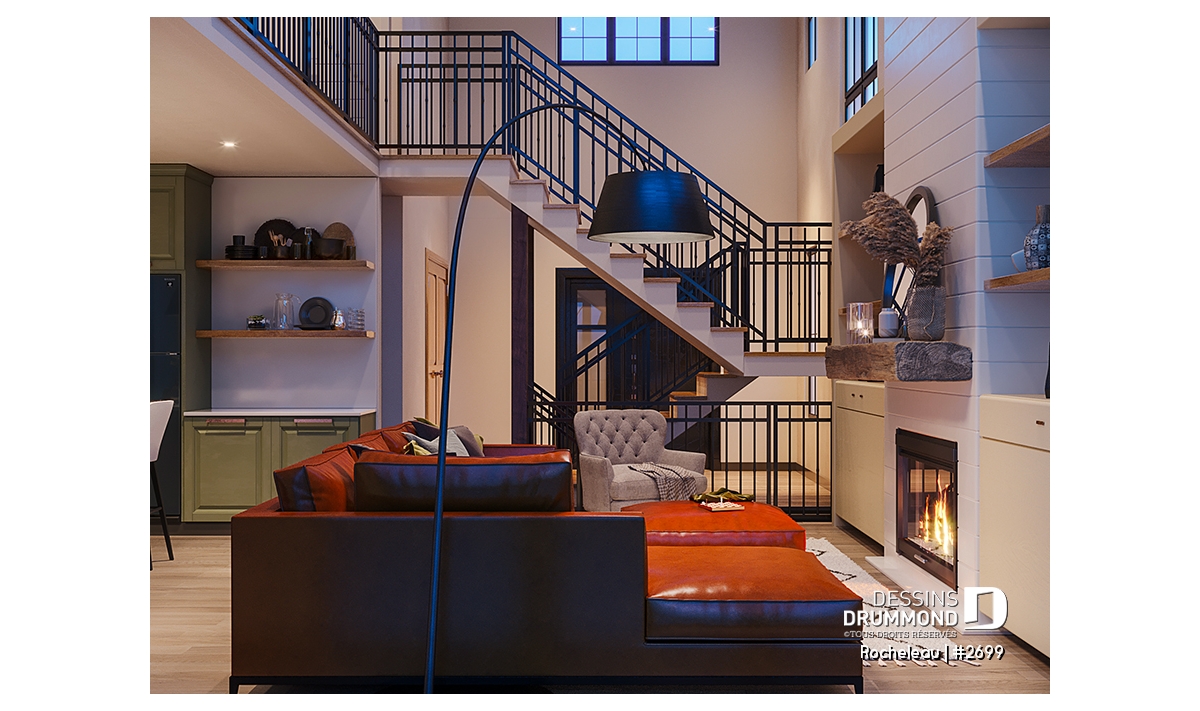 Balcon à l'étage, Bureau / Salle étude, Salle de lavage au rez-de-chaussée, Suite des maîtres à l'étage, Vestiaire, Plafond à plus de 8', Plafond cathédrale, Aire ouverte, Banquette, Foyer, Tablettes, Garde-manger, Terrasse abritée, Bain et douche séparés, Lavabo double, Bar à café, Mezzanine, Entrée ouverte sur 2 étages