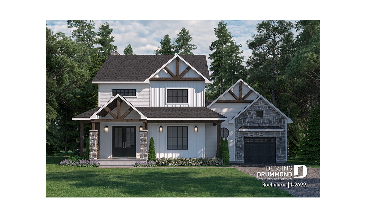 Le plan de maison ROCHELEAU (plan #2699) propose 1882 pi.ca. aménagés sur 2 étages, en plus d'un sous-sol avec *proposition d'aménagement (à faire ou non selon vos besoins) amenant ainsi cette belle maison à 3137 pi.ca.!