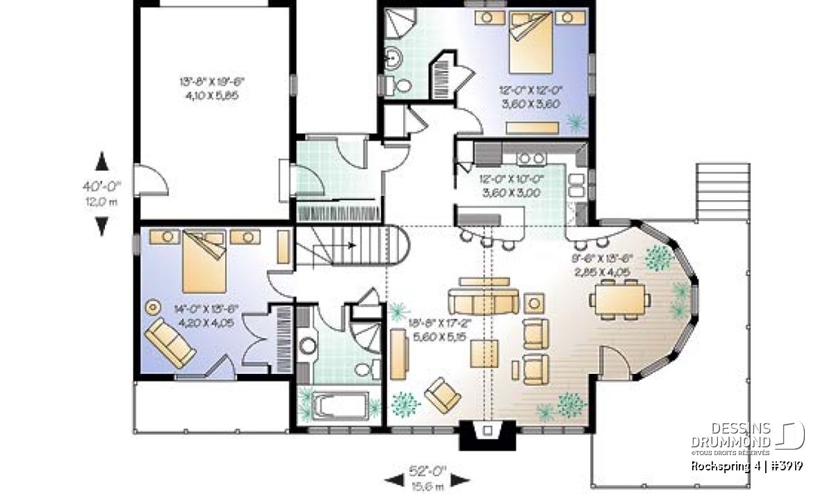 Largeur 52'0" Profondeur 40'0"