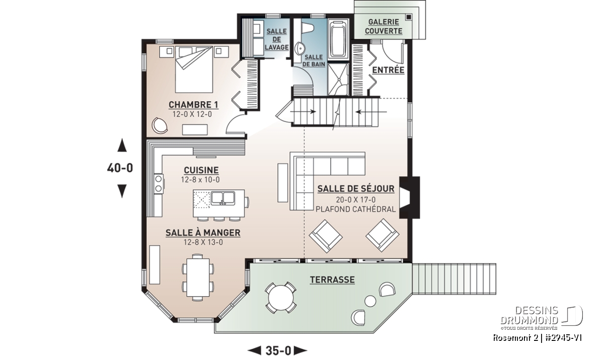 Après la réalisation de quelques modèles similaires au plan 2945 comme ce 2945A qui se veut une inversion parfaite du 2945 ou bien ce 2945A-V1 qui propose l’ajout d’un garage au 2945A, voici le 2945-V1 pour lequel on a ajouté tout près de 200 pi2 que l’on a consacrés à l’agrandissement de presque toutes les pièces intérieures.