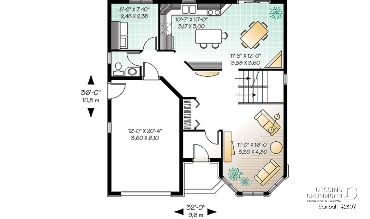 | Largeur | 32'0" | Profondeur | 36'0" |