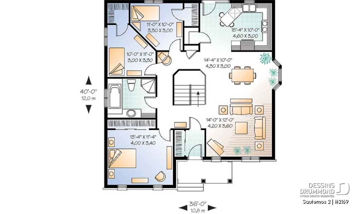 | Largeur | 36'0" | Profondeur | 40'0" |