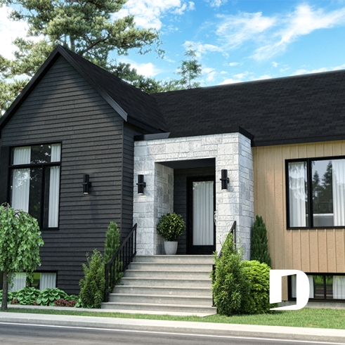 Ce plan de type maison de plain-pied, propose 3 chambres sur le rez-de-chaussée, ce qui est particulièrement pratique pour les jeunes familles. La chambre des parents a un garde-robe walk-in ainsi qu'un plafond surélevé partiel de 11'.