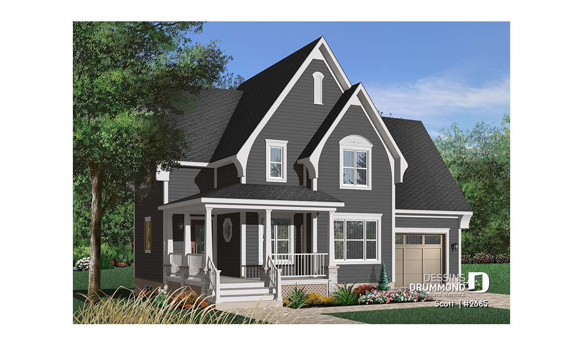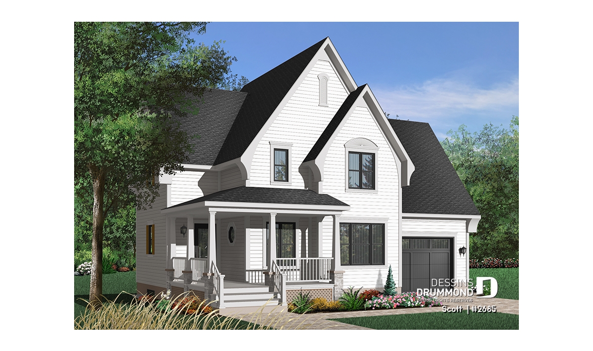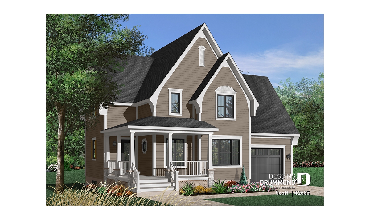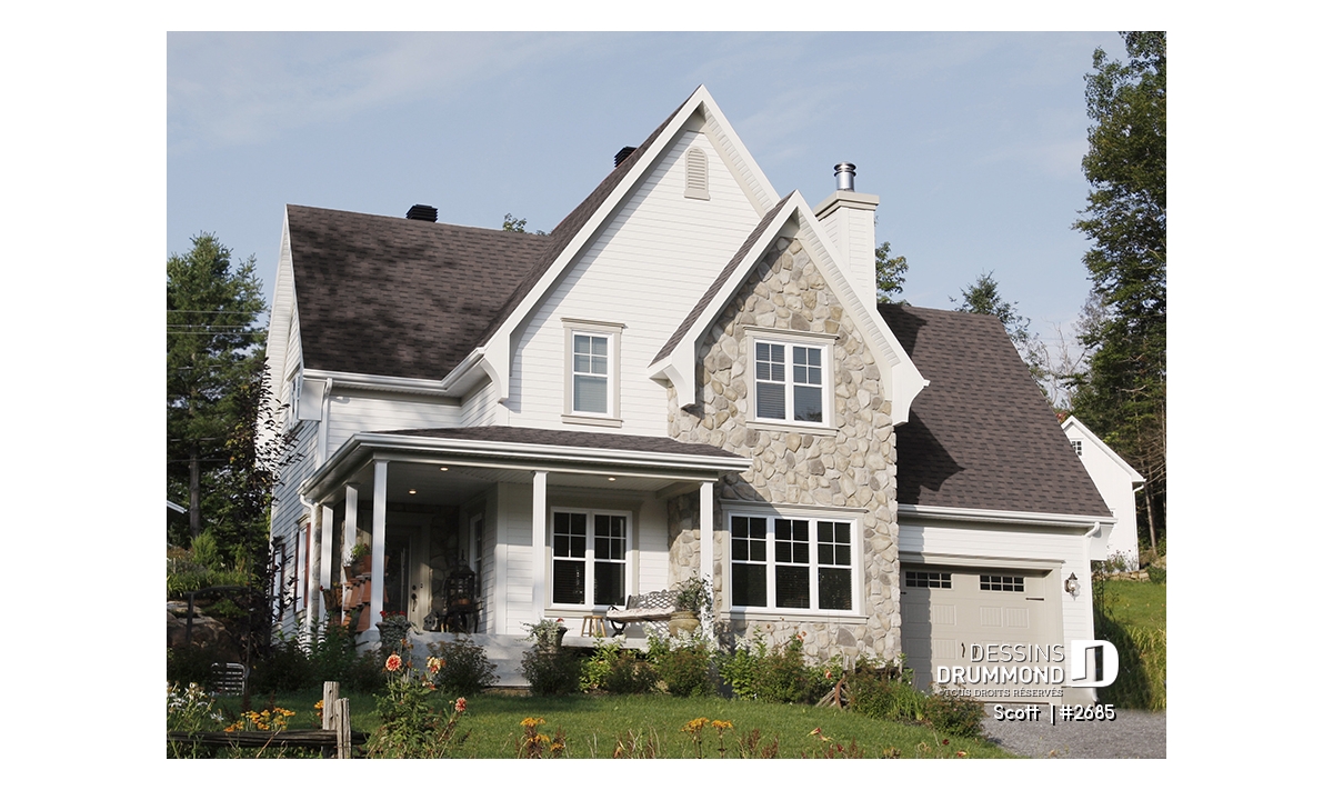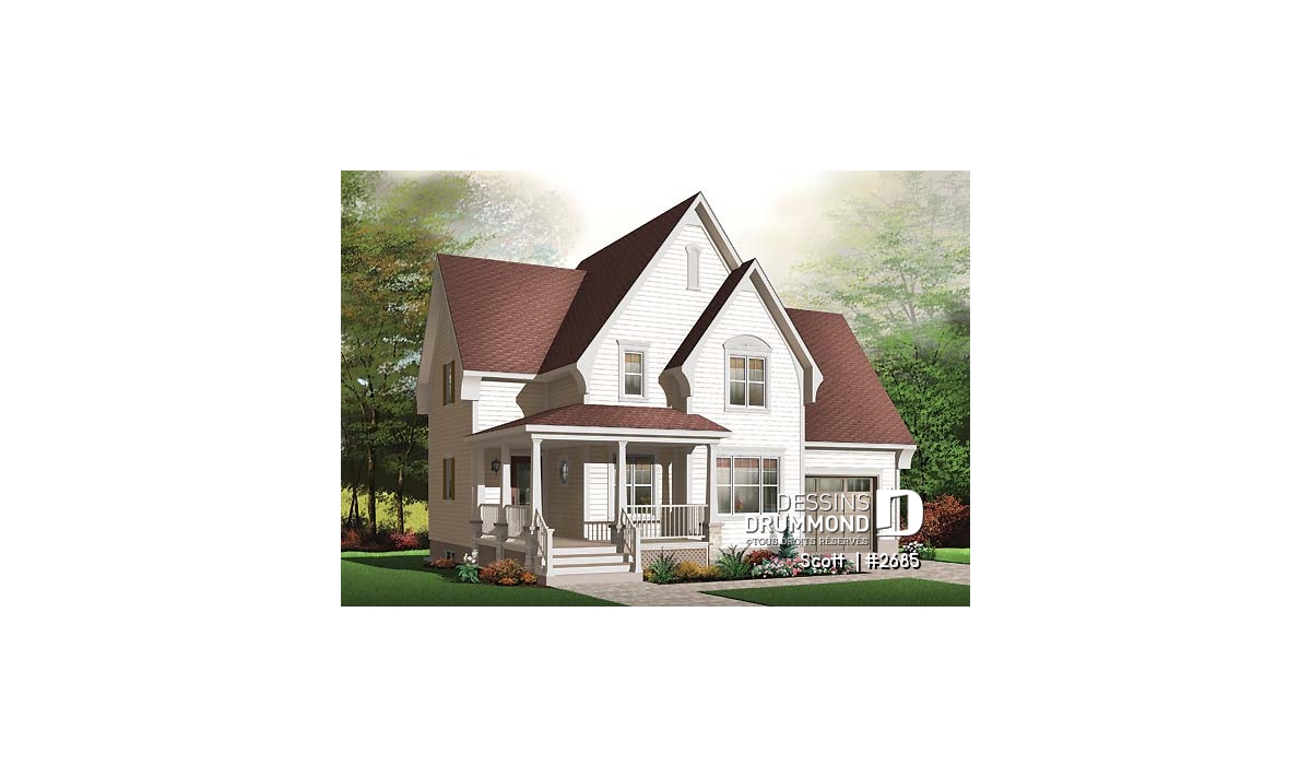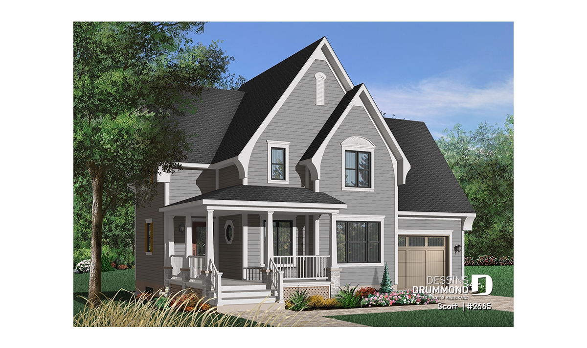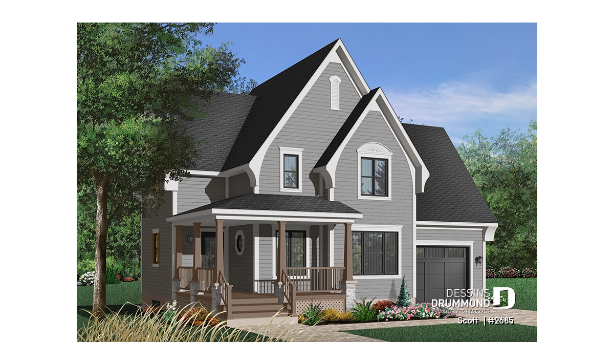Avec ses pignons élancés, sa galerie de six à sept pieds de profondeur courant sur deux façades et un ensemble de volumes bien balancés, ce cottage se veut des plus attrayants par son extérieur.