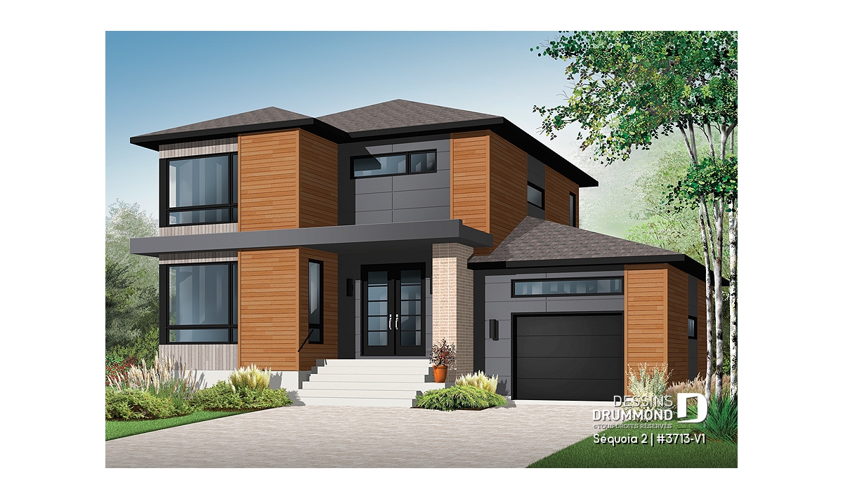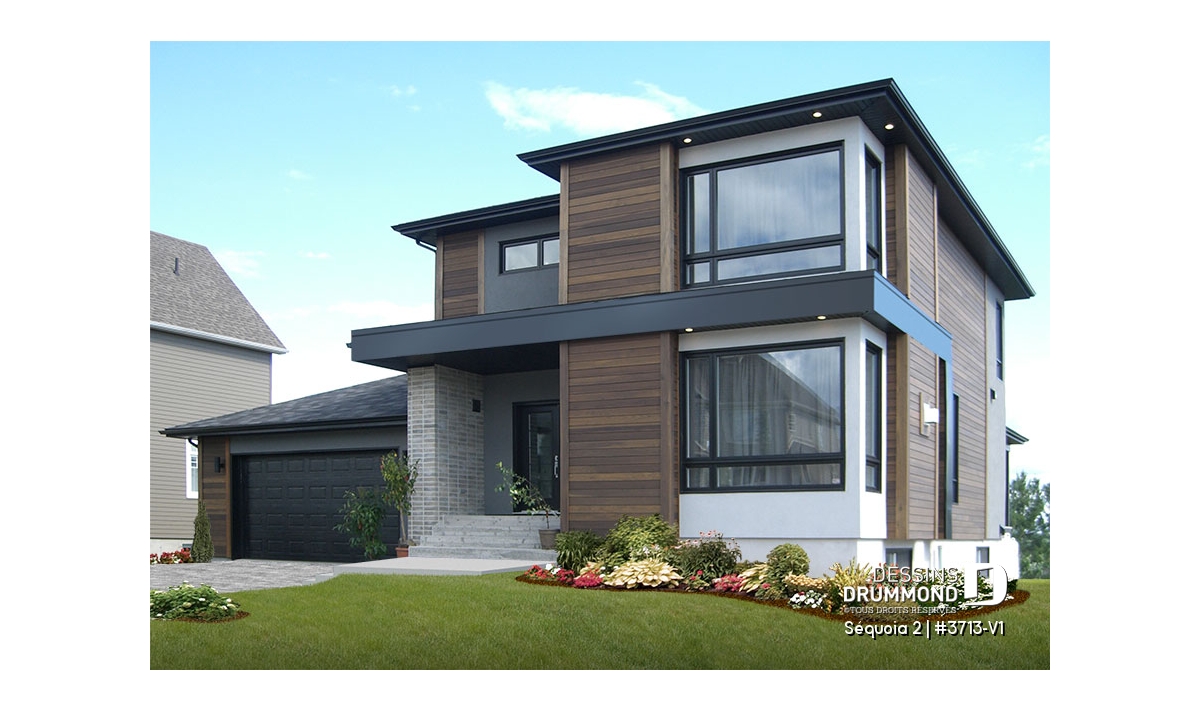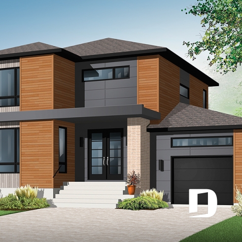 Maison contemporaine à étage avec garage.