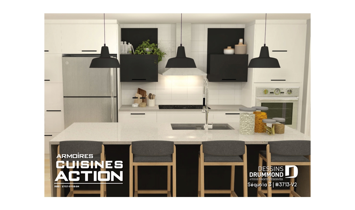 Cuisine avec garde manger et coin bar à café (face à l'îlot).