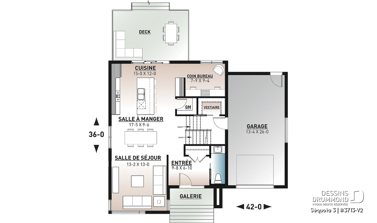 Plafond à 9' au rez-de-chaussée.