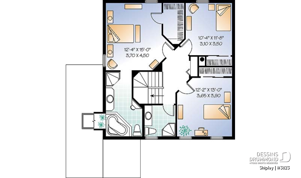 À l’étage, trois chambres, une salle de douche et une salle de bain propre à la chambre des maîtres composent ce plancher. Faits notables ici, l’excellent rangement dont bénéficie chacune des chambres et le fait que la 2è chambre en importance est d’un format s’apparentant étrangement à celui d’une chambre des maîtres; ce qui permettra, au besoin, d’y aménager aisément deux lits simples. Comme quoi, classique peut très bien rimer avec attrayant.