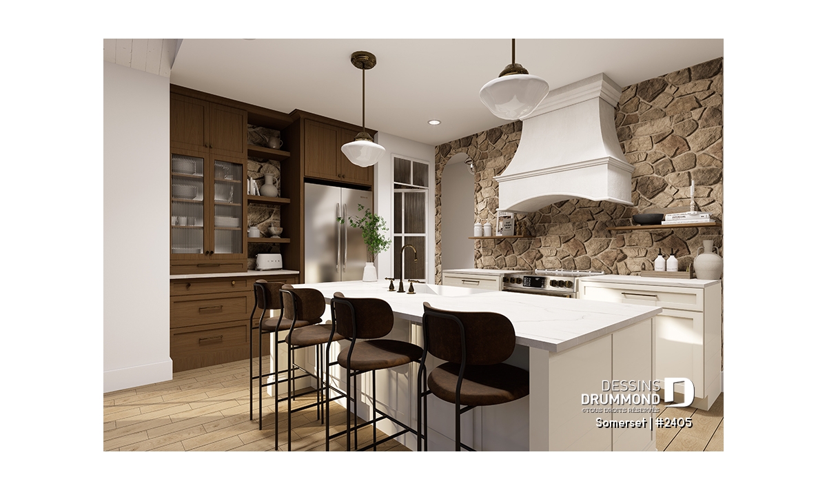 Comptoir-lunch, Bain et douche séparés, Plafond cathédrale, Vestibule, Garde-manger, Plafond à plus de 8', Terrasse abritée, Arche, Foyer, Vue paronamique, Walk-in ch. maîtres, Lavabo double, Banquette, Tablettes, Meuble(s) encastré(s), Entrepreneur, Auto-Construction