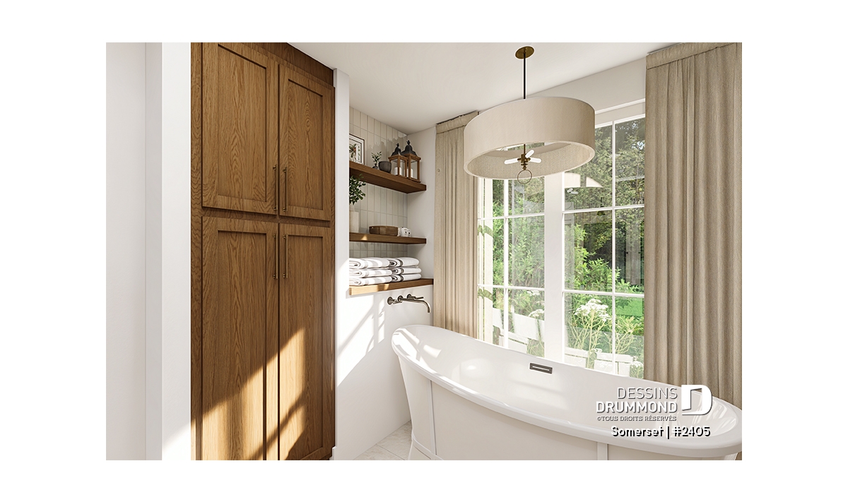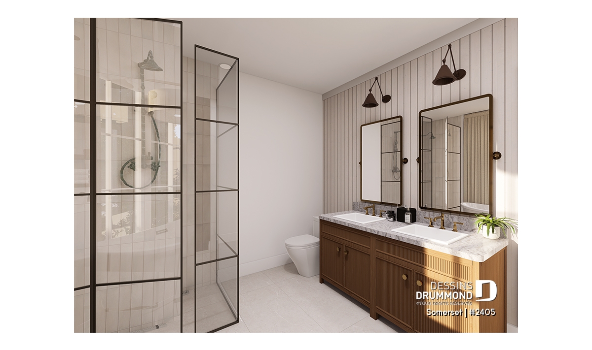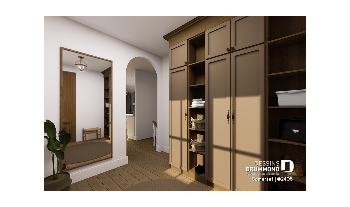 Le plan Somerset propose un joli plan de plancher bien pensé pour plusieurs types de familles... Elle plaira autant aux jeunes familles avec un seul enfant, à celles avec des ados qui pourront se loger au sous-sol aménagé (éventuellement), ainsi qu'aux couples cherchant à rapetisser le pied carré de leur maison tout en conservant les commodités si précieuses et recherchées de tous!