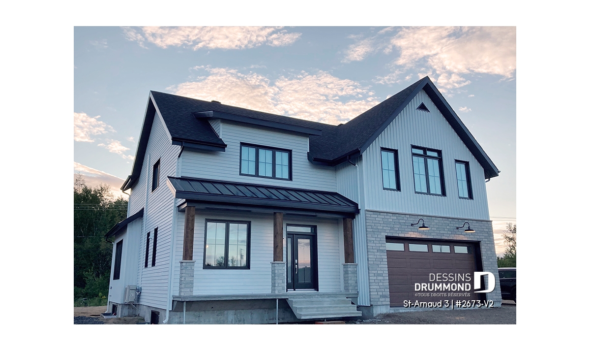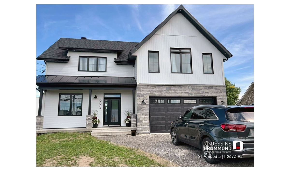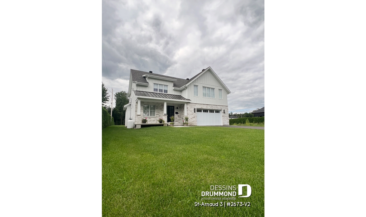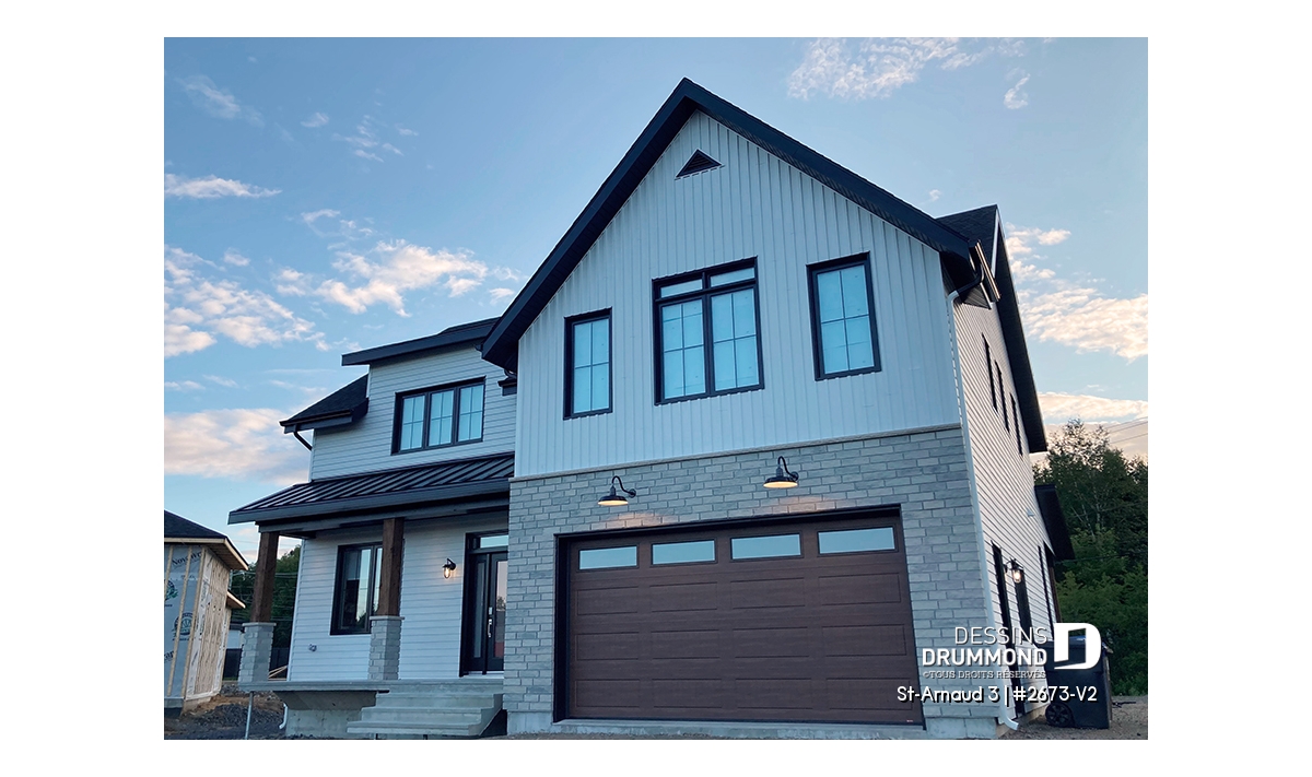 La mezzanine ouverte donnant sur la salle familiale accentue le volume et la luminosité de l’espace. Un garage double offre un accès direct et pratique à la maison. Enfin, un sous-sol à aménager selon vos besoins et plusieurs options de fondations permettent d’adapter ce plan à votre style de vie et à votre terrain.