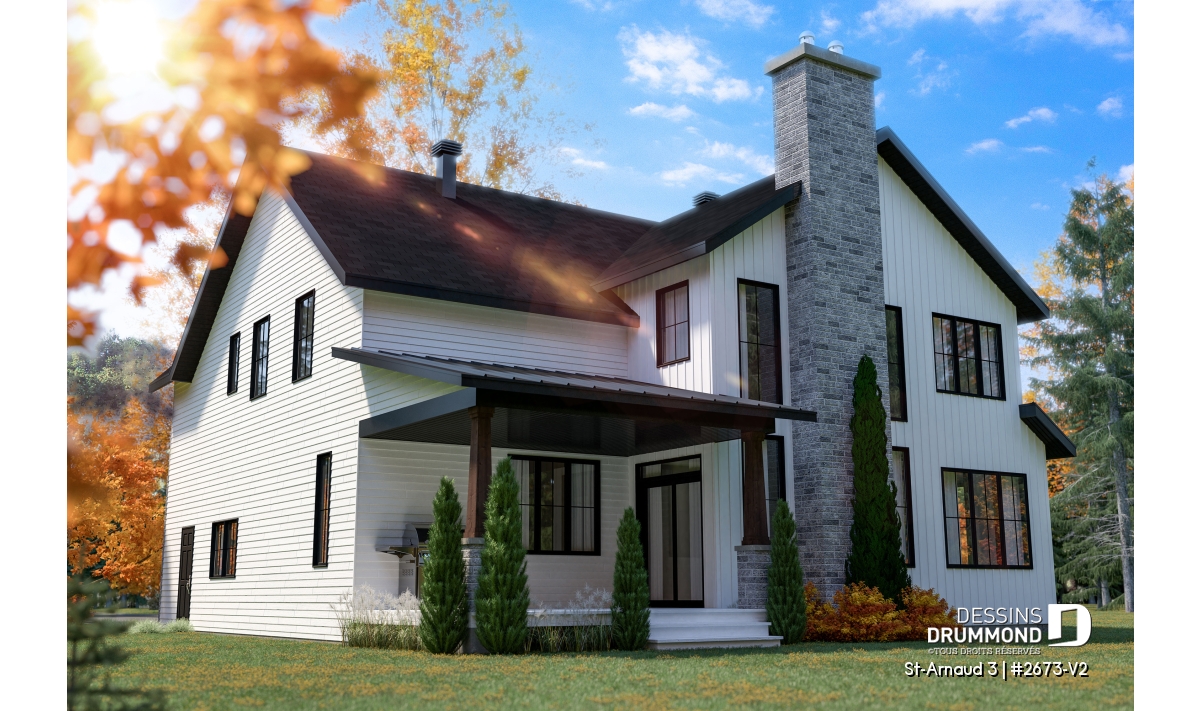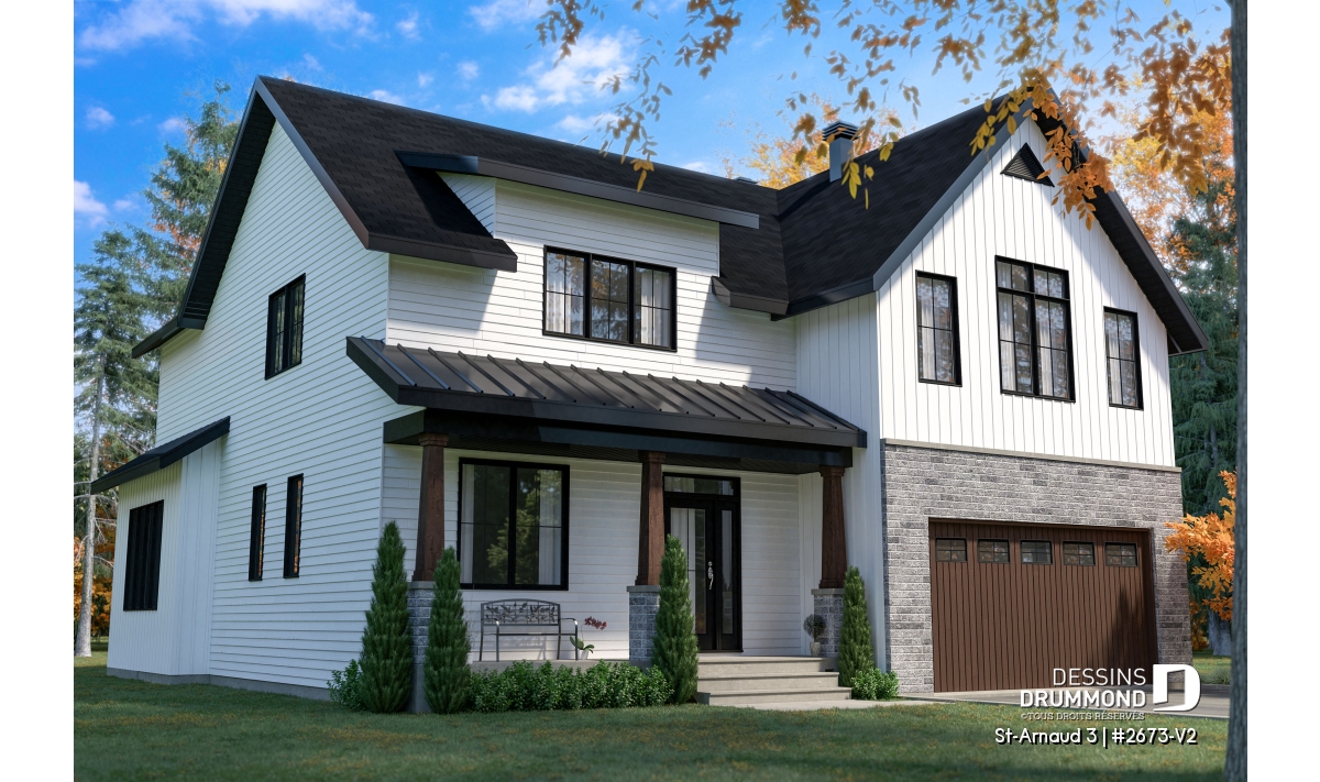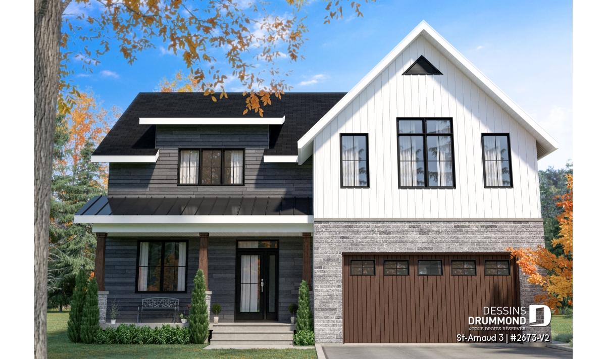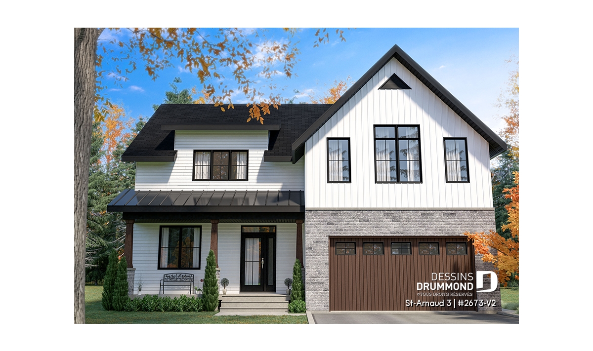 La mezzanine ouverte donnant sur la salle familiale accentue le volume et la luminosité de l’espace. Un garage double offre un accès direct et pratique à la maison. Enfin, un sous-sol à aménager selon vos besoins et plusieurs options de fondations permettent d’adapter ce plan à votre style de vie et à votre terrain.